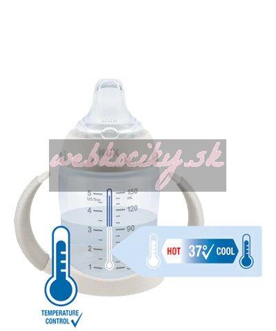 Fľaštička na učenie First chioce značky NUK má mäkké silikónové náustok s antikolikovým systémom, takže minimalizuje vznik koliky. Fľaštička je určená pre deti od 6 do 18 mesiacov. Praktické držadlá sa postarajú o bezpečný úchop a ľahký prechod na samostatnej pití. Indikátor kontroly teploty - modrá farba sa zmení na bielu, ak je obsah príliš horúci.