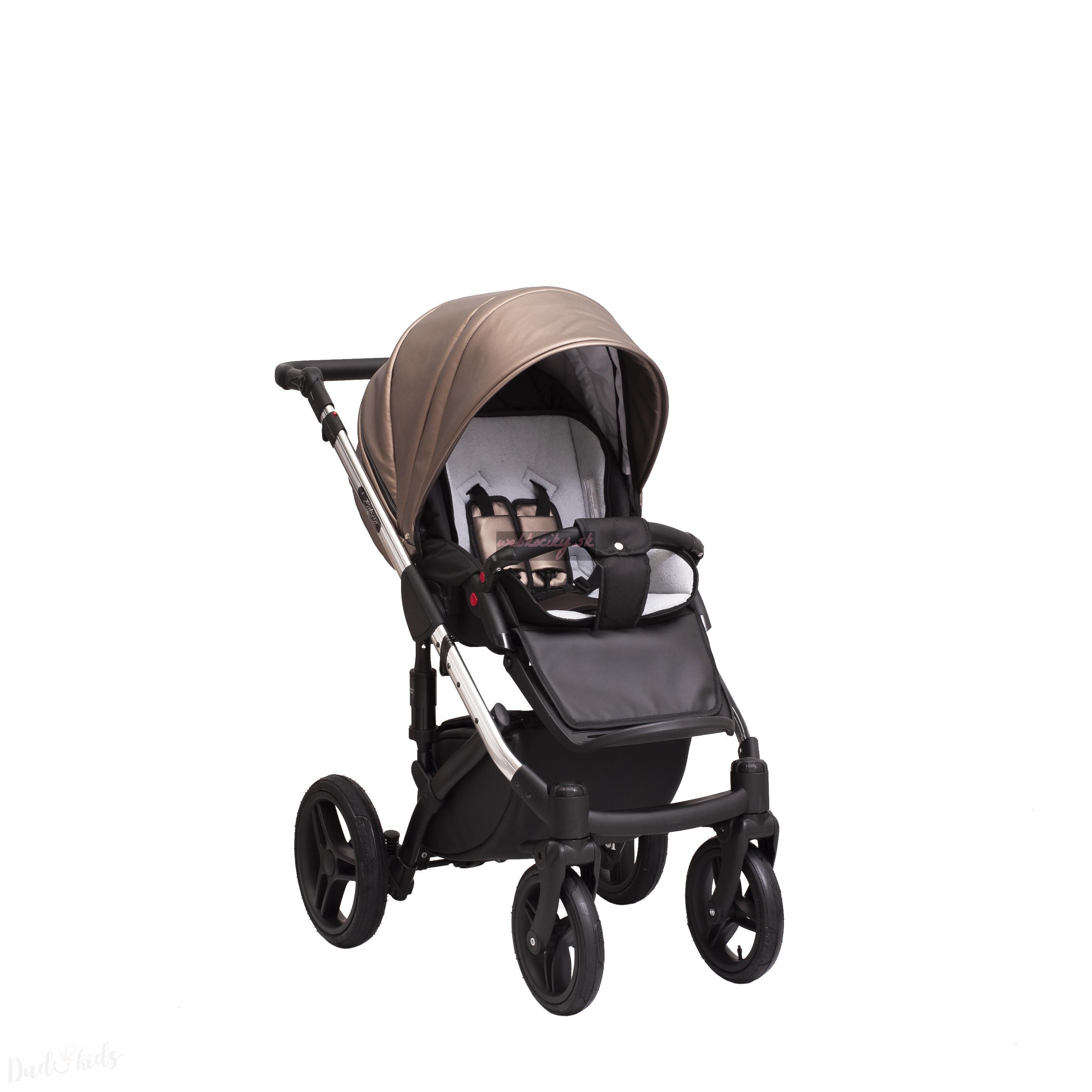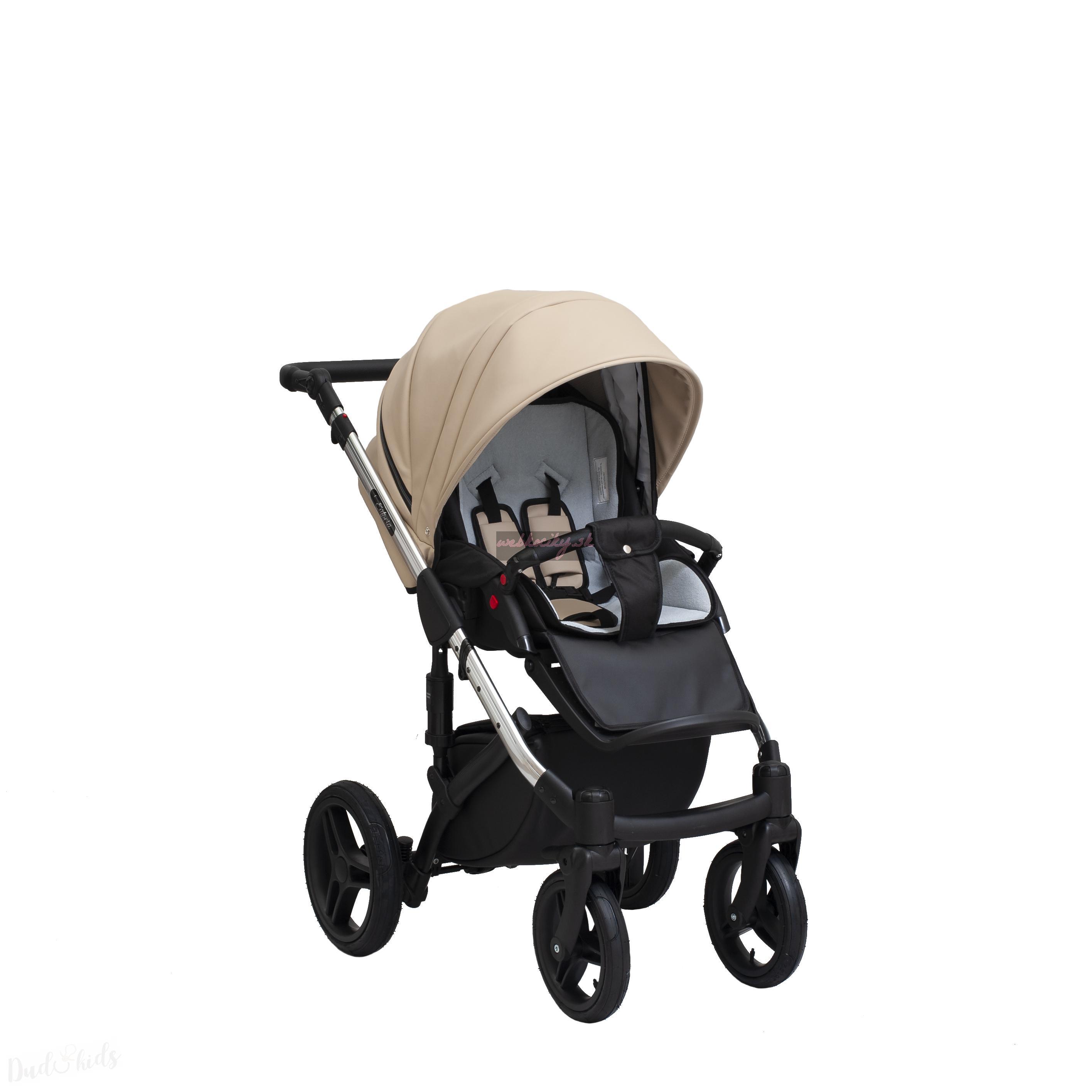 Konštrukcia podvozku je vyrobená z hliníka. Kočík je vybavený štyrmi nafukovacími alebo gélovými kolesami. Dve predné kolesá sú aretovacie. Tuhosť podvozku možno nastaviť podľa hmotnosti dieťaťa. Rukoväť je potiahnutá kvalitnou eko kožou. Pomôcť kĺbov si môžete nastaviť výšku rukoväti. Pri zloženie podvozku sa automaticky zachytí poistka, vďaka ktorej sa podvozok samovoľne nerozloží napr. Pri vkladaní do automobilu atď. Priestranný košík si môžete pomôcť zipsu uzavrieť. Kočík sa brzdí centrálnej brzdou.