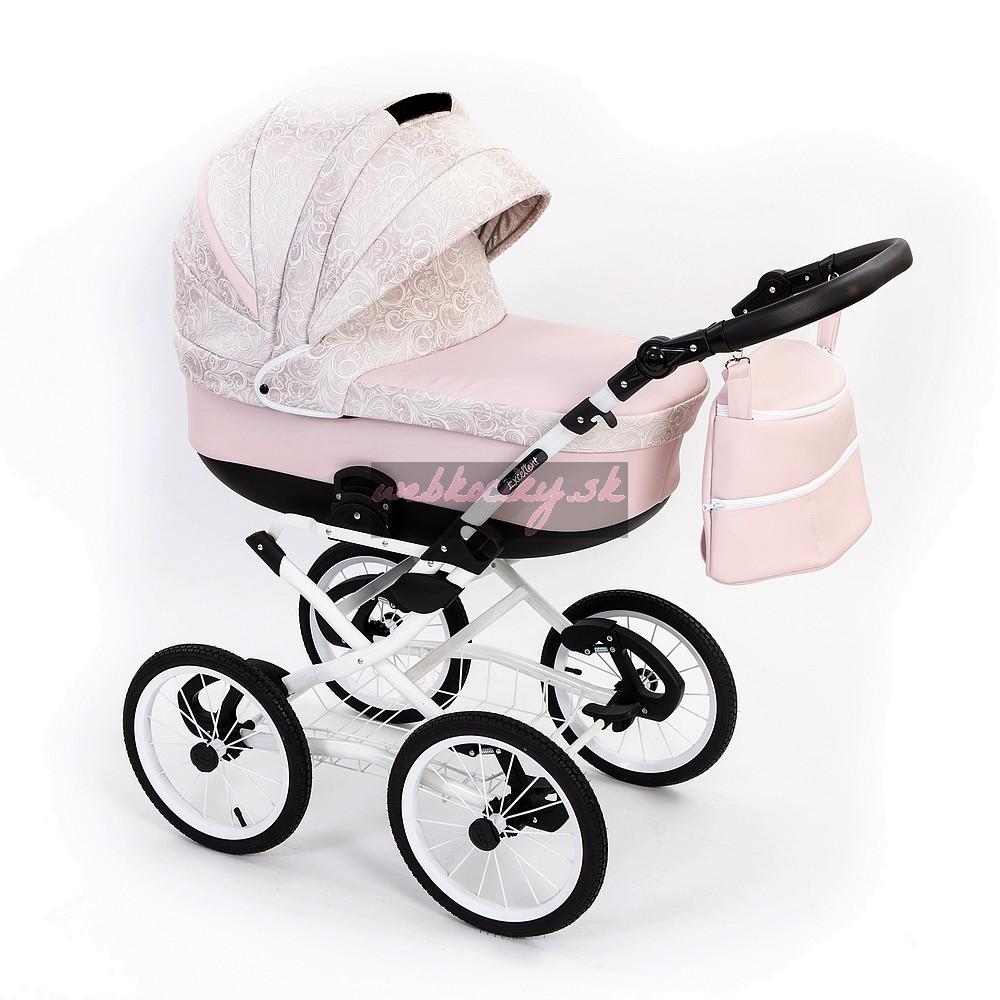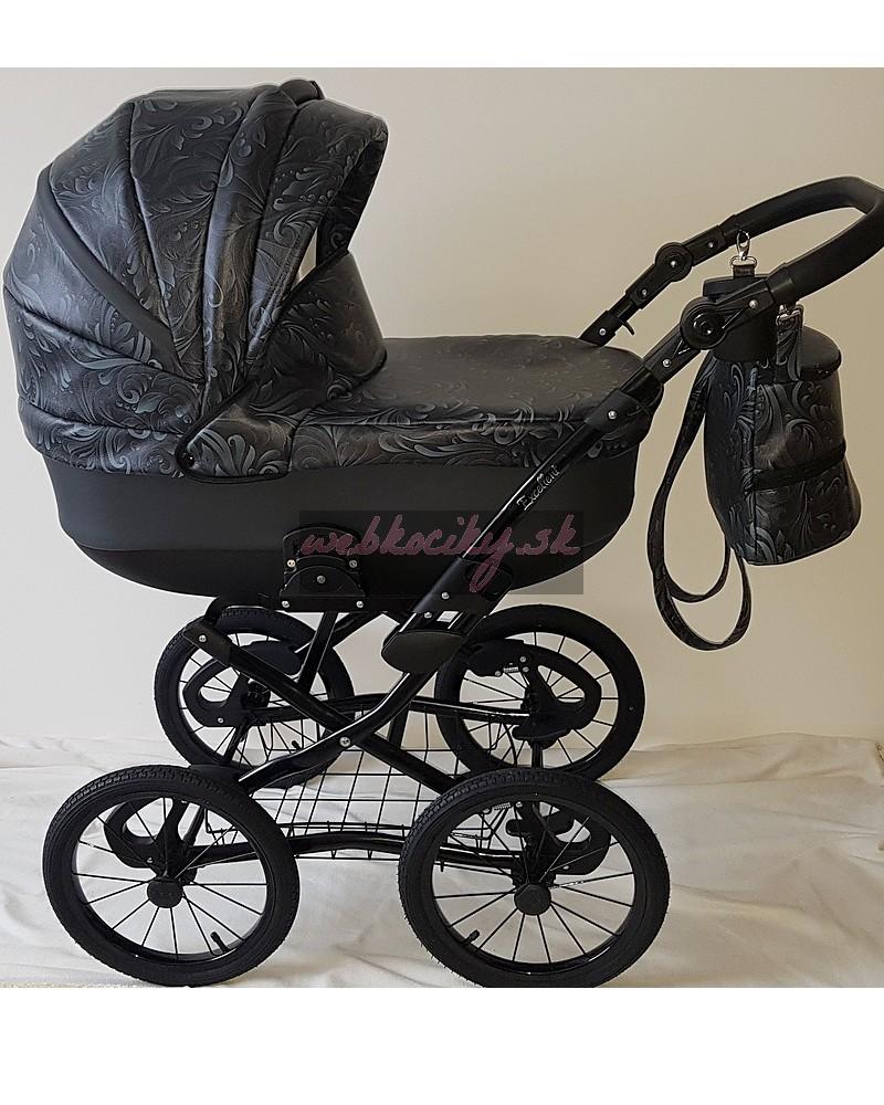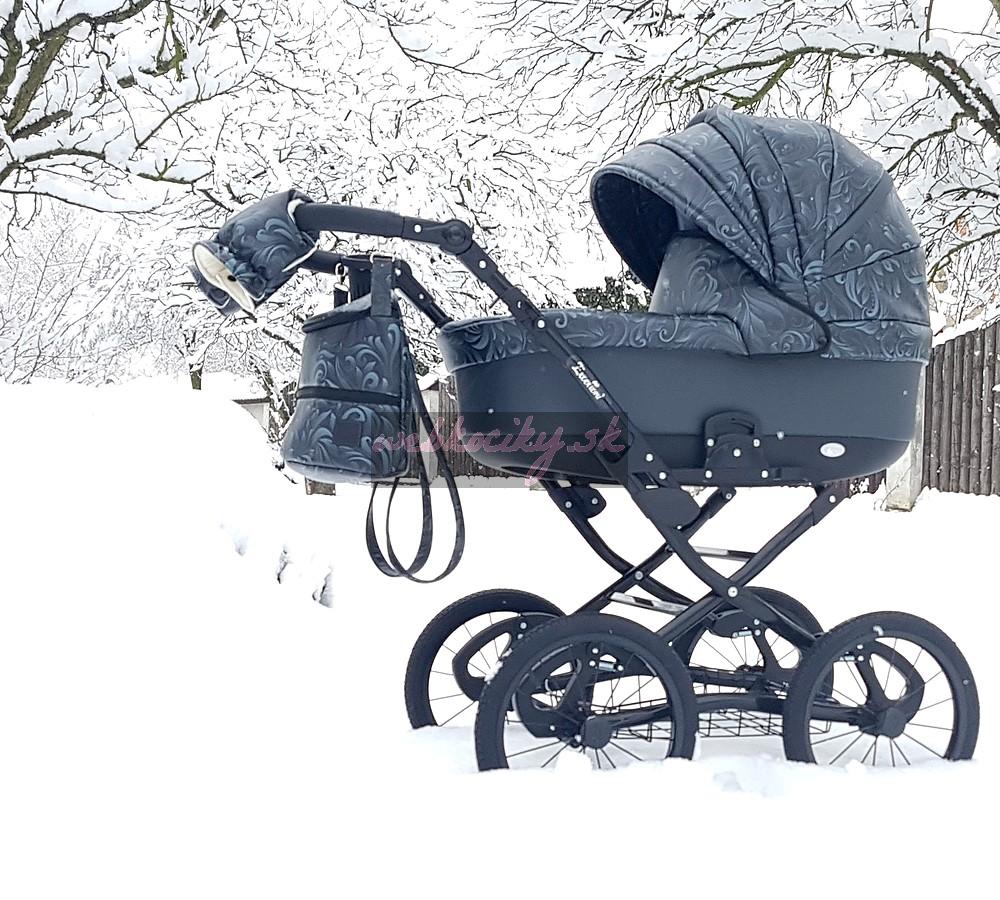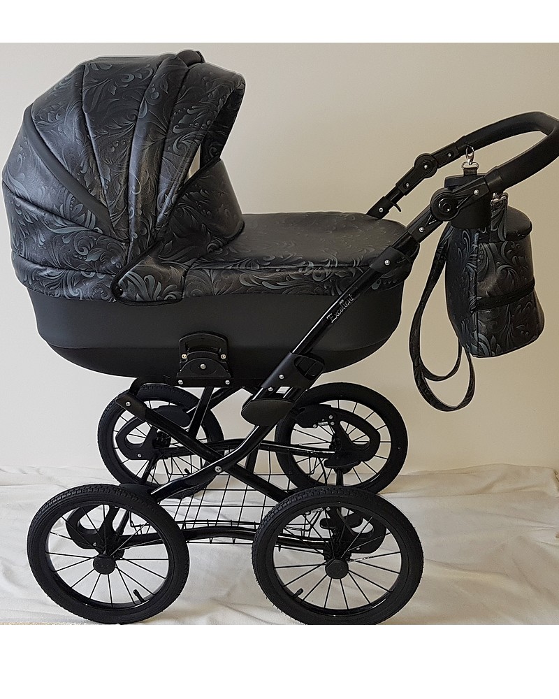 Luxusní stylový retro kočárek Grande má velká drátěná nafukovací kola a měkce odpružený podvozek s důrazem kladeným na funkčnost a bezpečnost. Kola mají kuličková ložeiska a mají průměr 36 cm. Rukojeť je výškově nastavitelná, součástí podvozku je drátěný nákupní košík , kde s klidem můžete dát i těžší nákup.