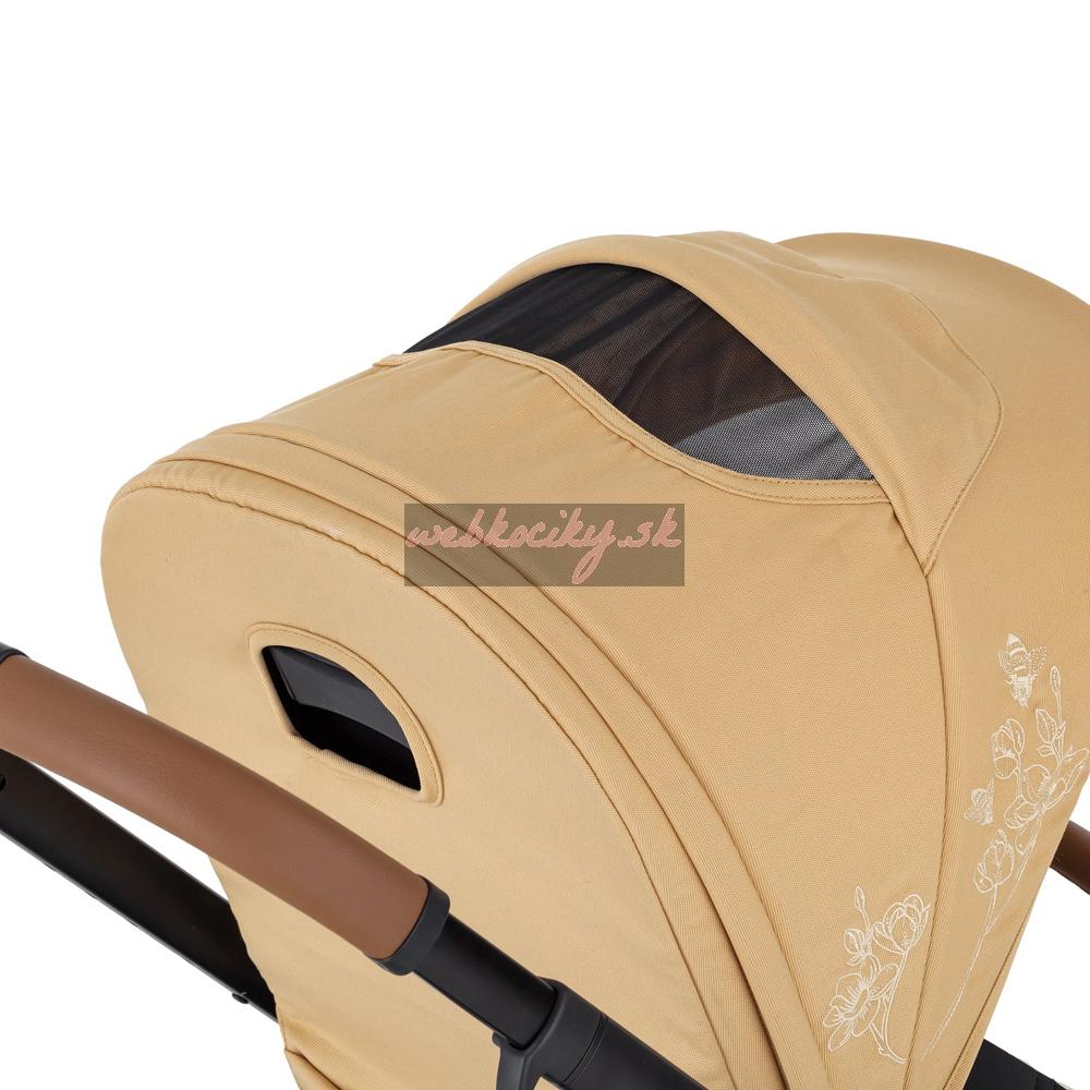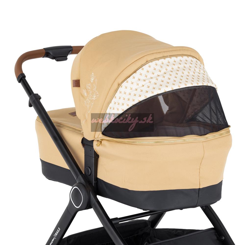 Priestranná pohodlná vanička má odnímateľný vnútorný poťah, ktorý je možné prať. Je s odvetranou strieškou, vďaka ktorej bude bábätku v kočíku príjemne aj v teplých letných mesiacoch. Naopak v prípade nepriaznivého počasia je možné chránič vaničky vypnúť hore pomocou cvokov a Vaše dieťatko môže spokojne a nerušene spinkať.