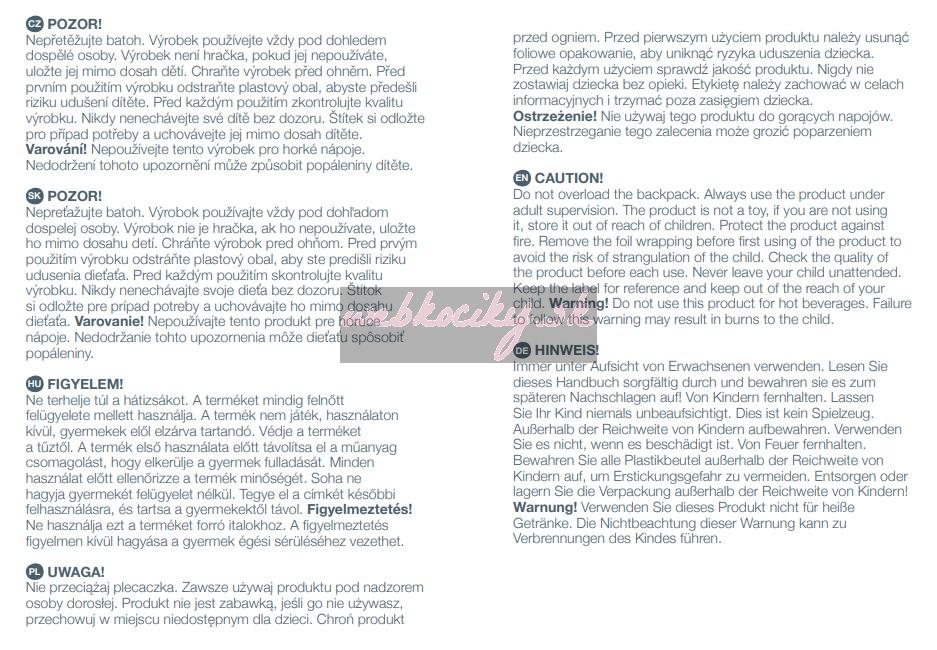 Batôžtek BACKIE je určený pre aktívne deti. Jeho veľkosť je prispôsobená postave malého dieťaťa, navyše má bezpečnostný prvok v podobe stabilizačného popruhu s prackou, ktorý zabraňuje skotúľaniu batohu z ramien.