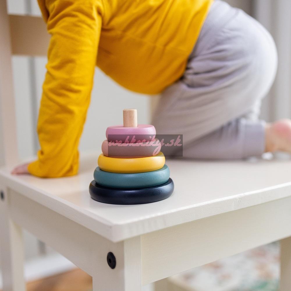 Pyramída sa skladá zo 6 farebných diskov, ktoré dieťa umiestni na základňu s kolíkom. Hračka dokonale rozvíja zmysel pre pozorovanie a učí logickému mysleniu. Vďaka pevnému spracovaniu je stabilná a odolná.