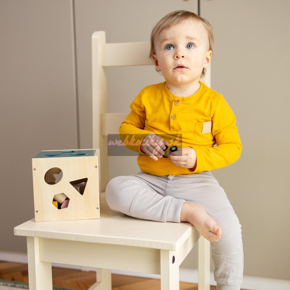 Hračka je určená pre deti od 1 roka. Súprava obsahuje triediacu kocku a 12 farebných dielikov. Každý prvok je starostlivo testovaný, odolný voči hádzaniu a úderom, čo zaručuje trvanlivosť aj počas intenzívnej hry.