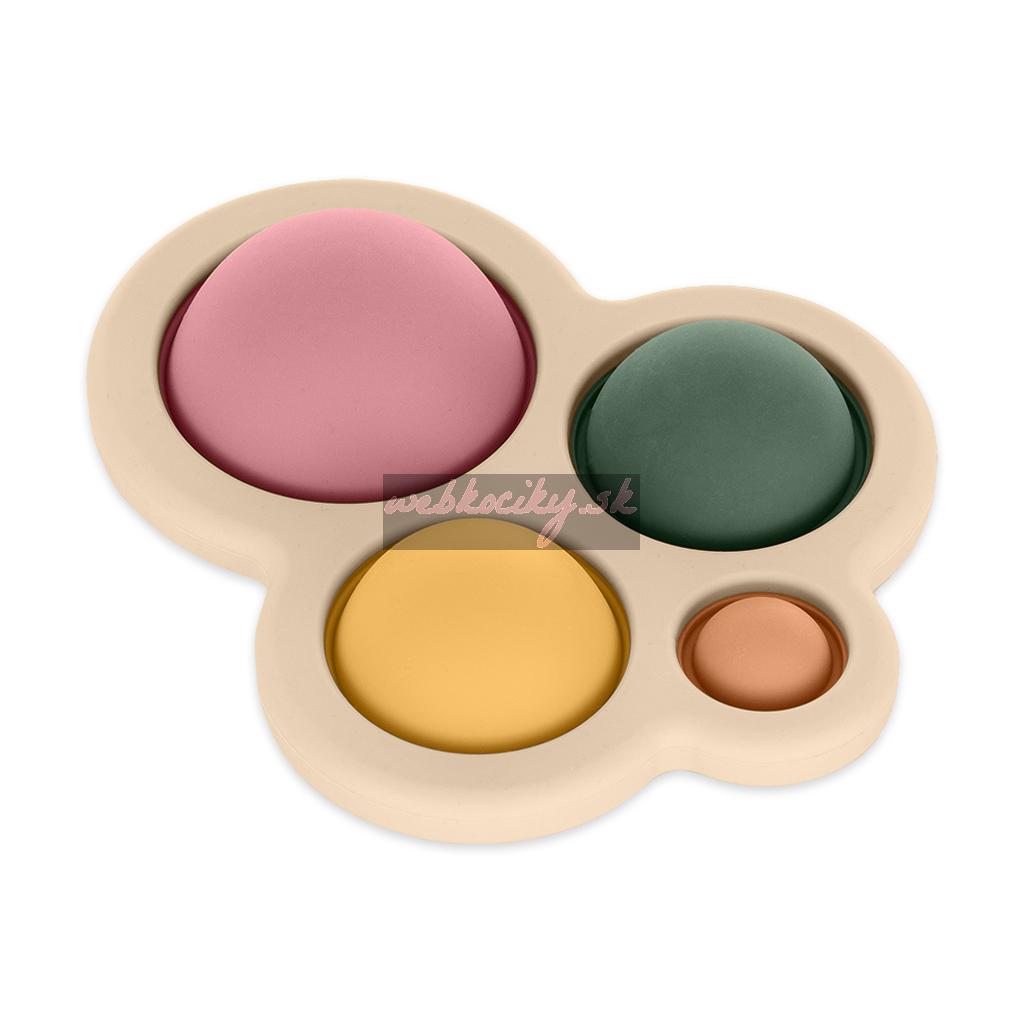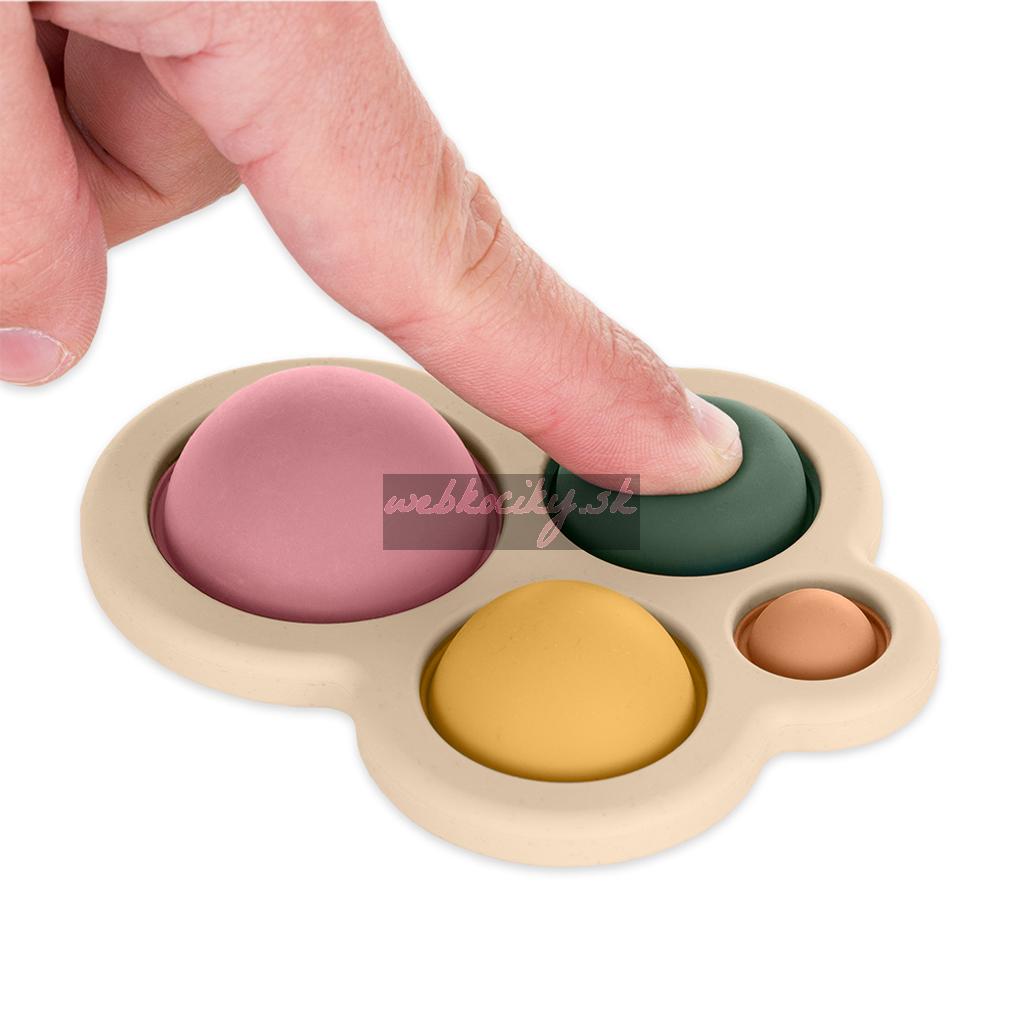 Táto hračka pozostávajúca z bublín rôznych veľkostí môže slúžiť ako hryzátko aj ako pomôcka na rozvoj manuálnych zručností. Obsahuje tlačítka na stláčanie pre dlhotrvajúcu zábavu.
