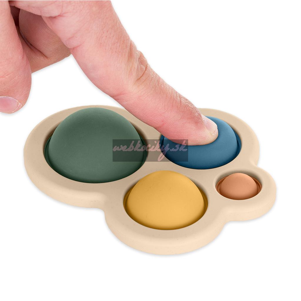 Táto hračka pozostávajúca z bublín rôznych veľkostí môže slúžiť ako hryzátko aj ako pomôcka na rozvoj manuálnych zručností. Obsahuje tlačítka na stláčanie pre dlhotrvajúcu zábavu.