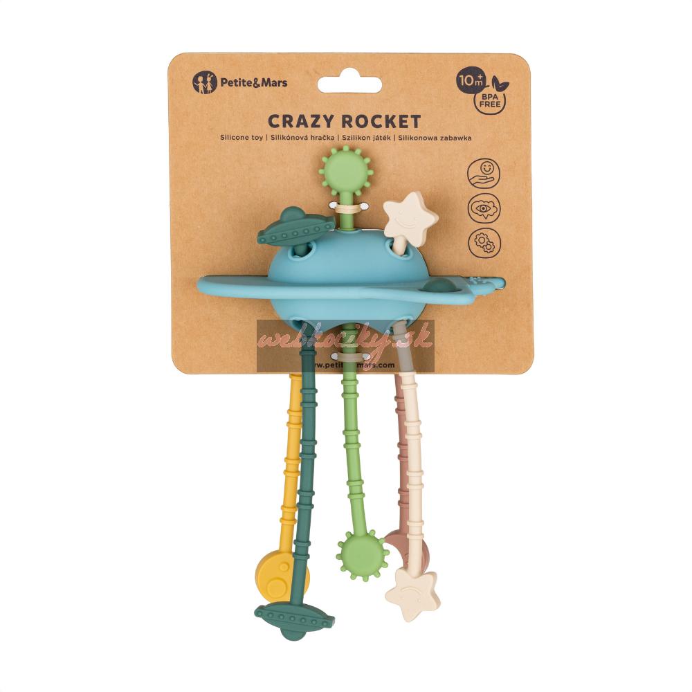 PETITE&MARS Hračka silikónová senzorická Crazy rocket Frosted Sky 10m+
