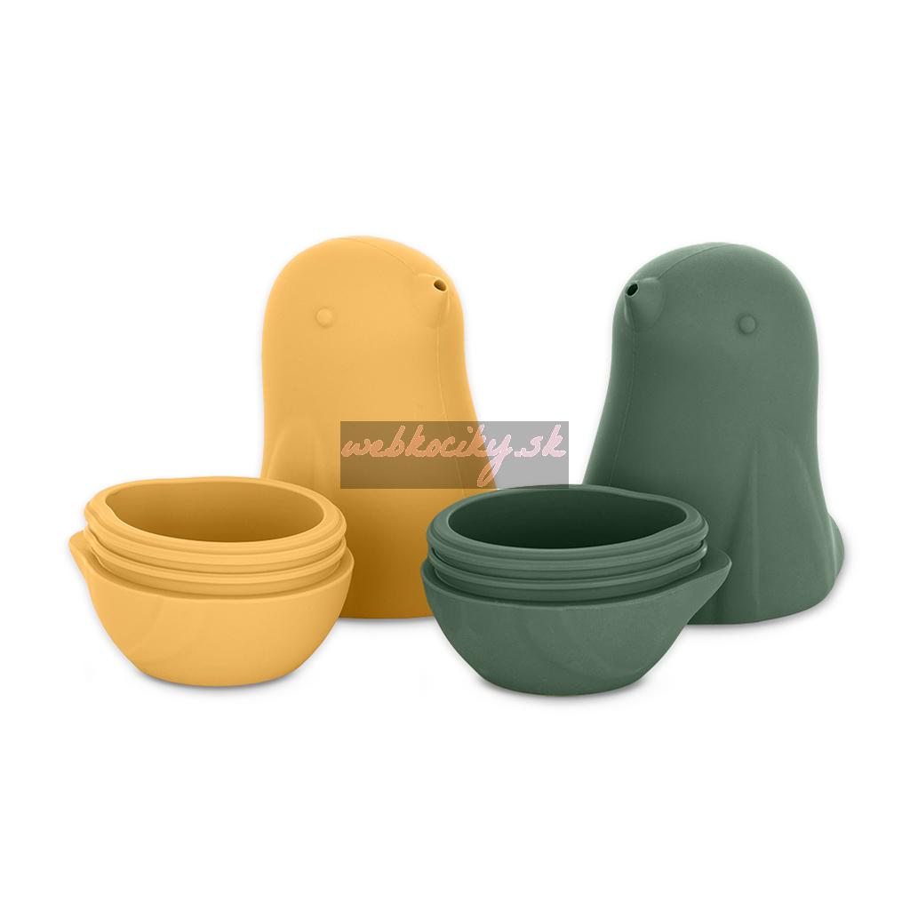 PETITE&MARS Hračky silikónové do vody Love birds Ochre Green 6m+