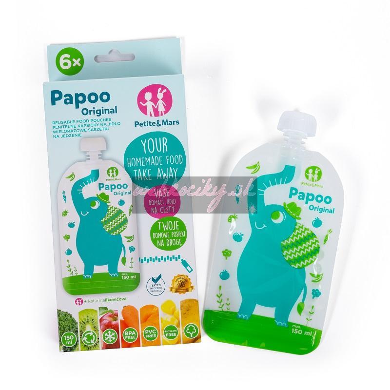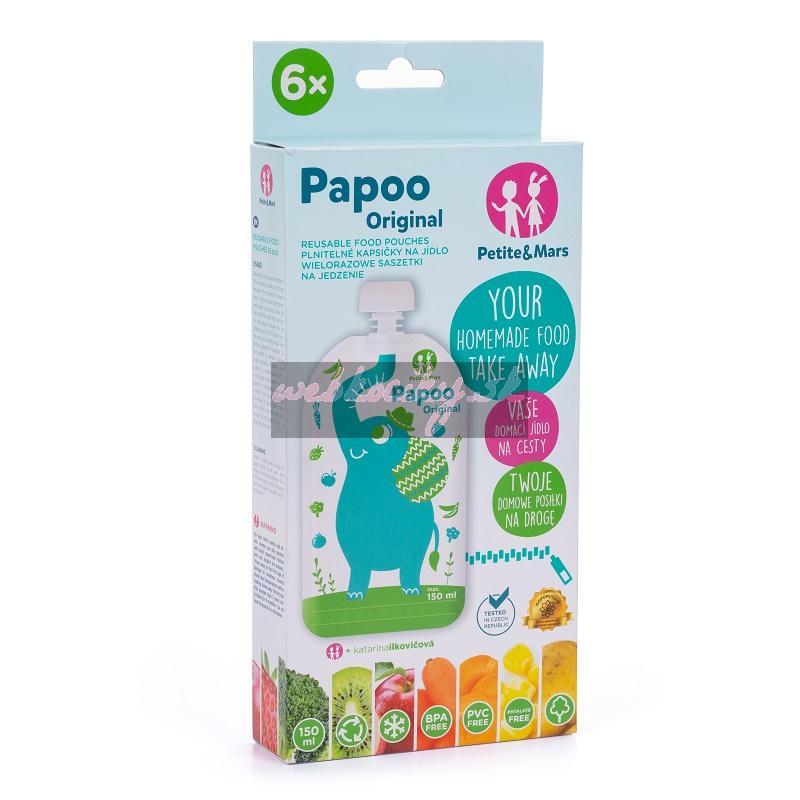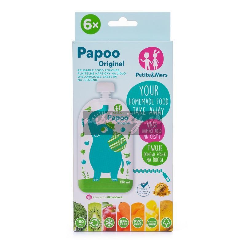 PETITE&MARS Kapsička na jedlo Papoo Original Elephant 6 ks