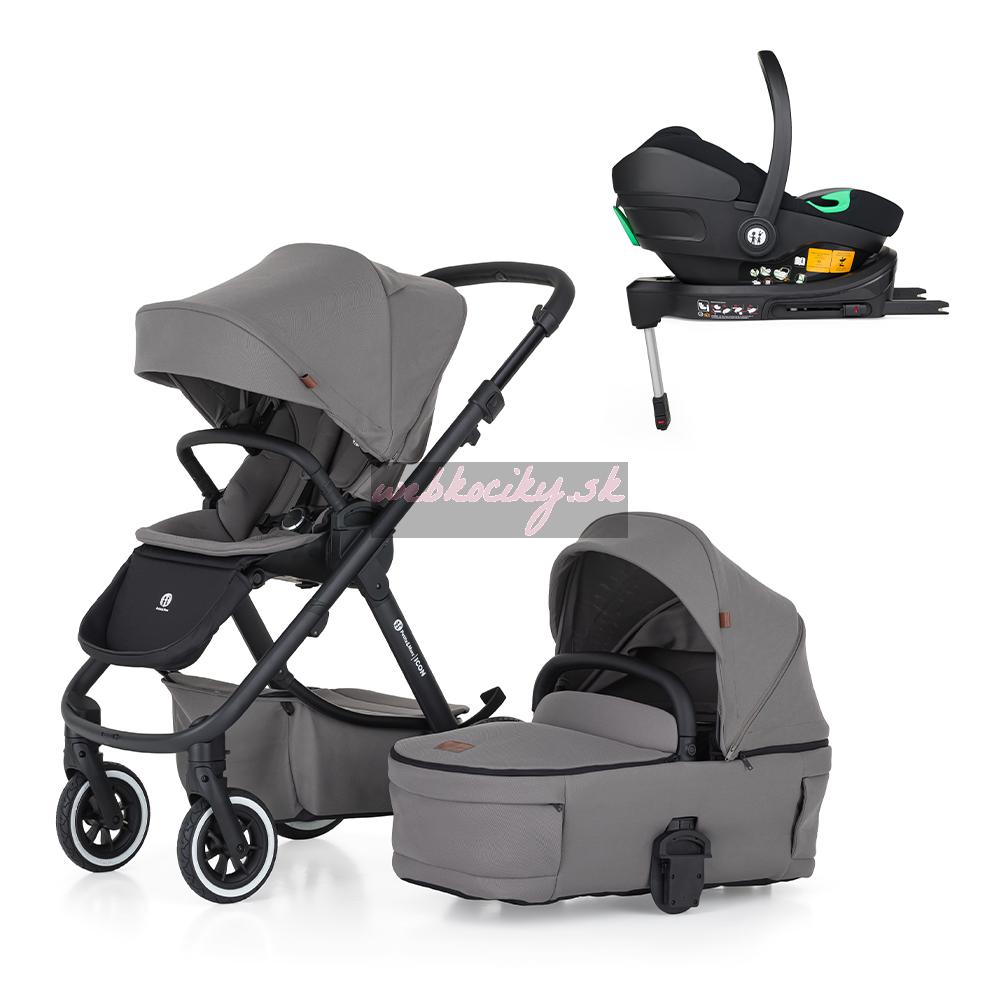 PETITE&MARS Kočík kombinovaný ICON 2v1 Dove Grey LITE AIR + Core Pro i-Size Black Grey + Báza