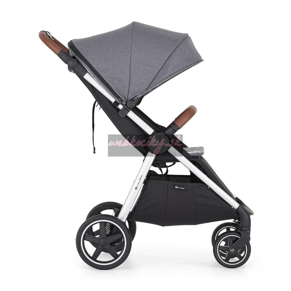 - Konštrukciu kočíka v striebornej farbe s madlom a rukoväťou v hnedej eko-koži
