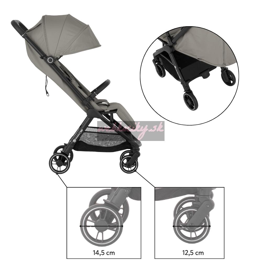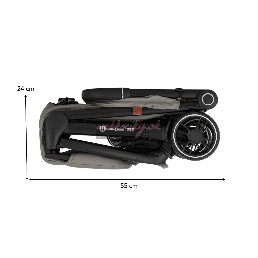 ZIP patrí medzi kočíky s kabínkovým rozmerom po zložení, takže ho môžete bez obáv vziať na palubu lietadla alebo uložiť do kufra aj menšieho auta. S hmotnosťou iba 7 kg ho bez problémov prenesiete v jednej ruke, pričom druhou môžete viesť dieťa.