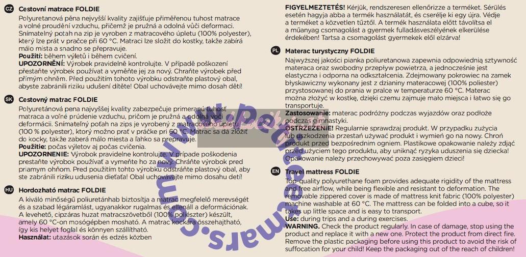 Snímateľný poťah na zips je vyrobený z matracovej pleteniny, ktorú možno prať v práčke pri teplote 60 ̊C. Matrac sa dá zložiť do kocky, takže zaberá málo miesta a ľahko sa prenáša. Súčasťou balenia je taška na prenášanie s praktickou rukoväťou, vďaka ktorej sa matrac aj ľahko skladuje.
