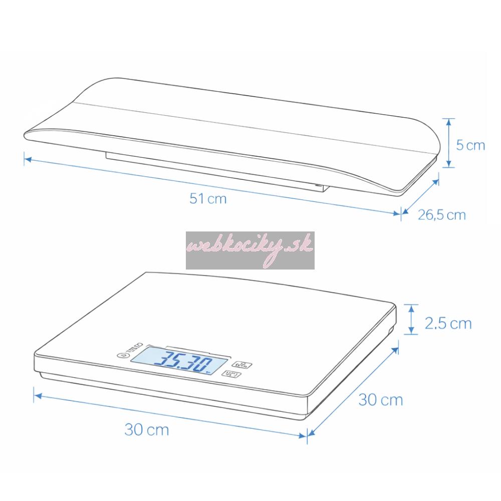 • Odnímateľná plastová vanička na váženie dojčiat