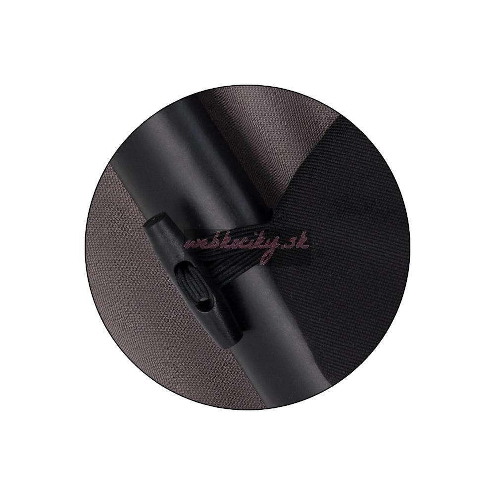 Praktické dva zipsy uľahčujú manipuláciu, umožňujú rýchle odvetranie alebo pohodlné vybratie dieťaťa bez potreby úplného odopínania. Uchytenie je riešené pomocou elastických pútok a zapínania, ktoré zabezpečujú pevné a stabilné pripevnenie ku konštrukcii kočíka.