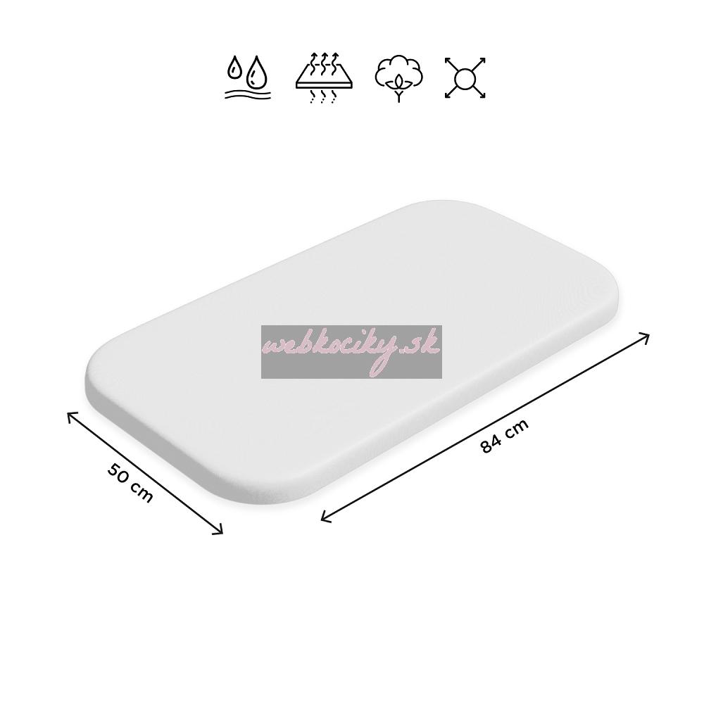 Praktická nepremokavá plachta vhodná do menších postieľok s rozmerom 84 x 50 cm. Je vybavená praktickou gumičkou, vďaka ktorej dobre drží na matraci.
