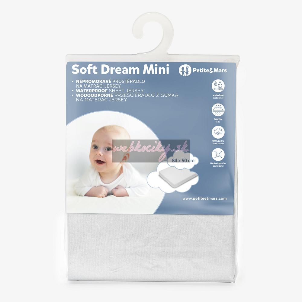 PETITE&MARS Napínacia plachta nepremokavá do malej postieľky Soft Dream Mini 84 x 50 White