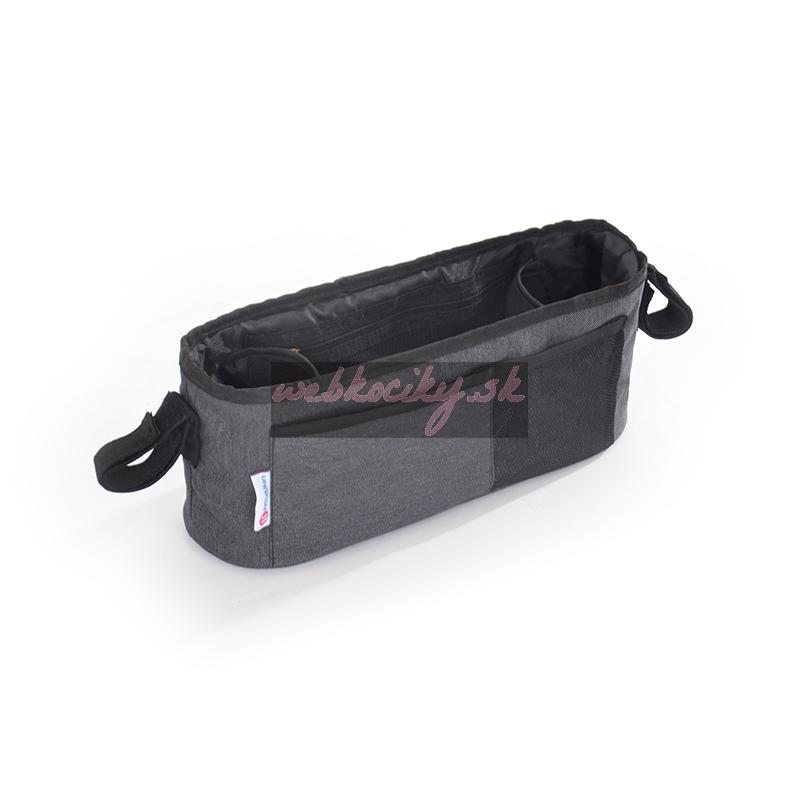 Praktický organizér s nastaviteľnými popruhmi na prichytenie k rukoväti kočíka. Je vhodný pre väčšinu kočíkov. Pri prechádzke budete mať všetky dôležité predmety po ruke.