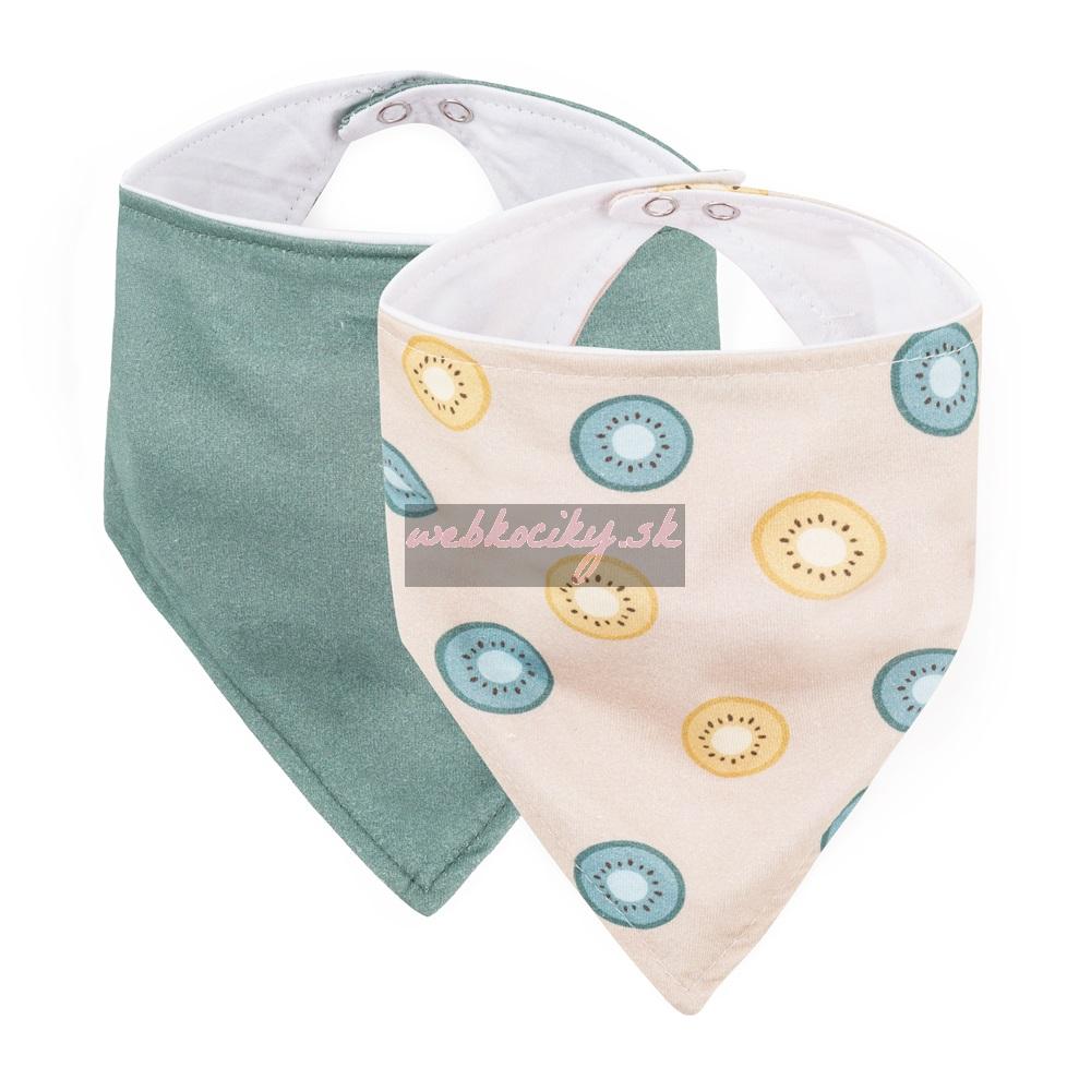PETITE&MARS Podbradník bandana Luke 2 ks Beige Kiwis&Misty Green 3m+