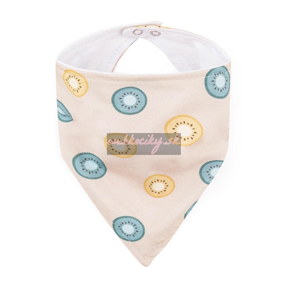 Súprava obsahuje dva podbradníky – jeden v jednofarebnom prevedení a druhý so štýlovým vzorom, čo umožňuje ľahké zladenie s akýmkoľvek outfitom. Praktické zapínanie na cvoček s nastaviteľnou veľkosťou zabezpečuje dokonalé prispôsobenie okolo krku dieťatka.