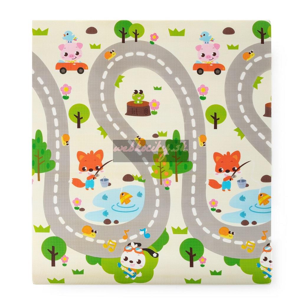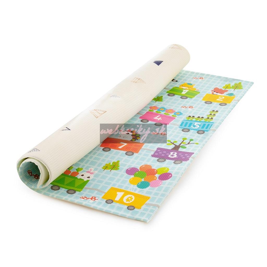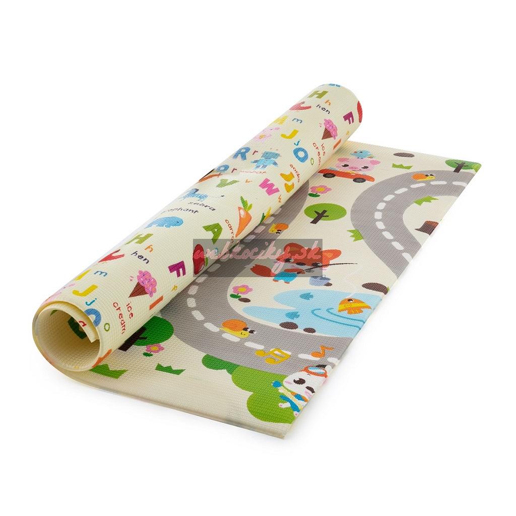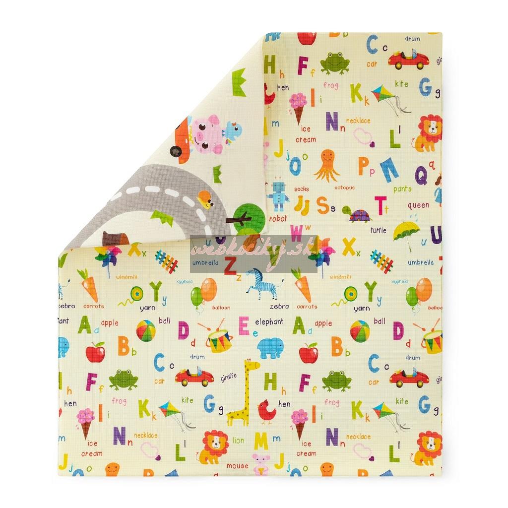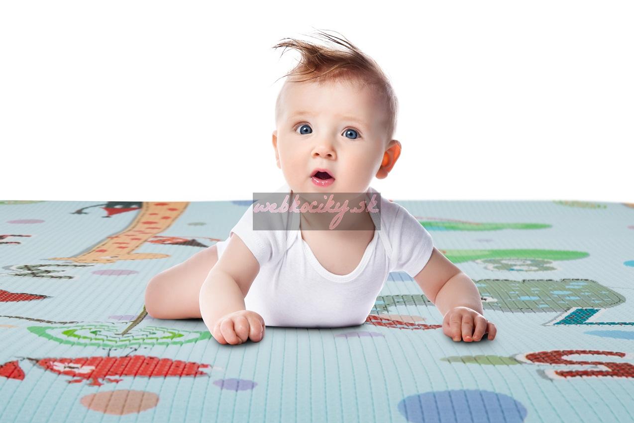 Obojstranná potlač s veselými farebnými obrázkami stimuluje rozvoj zmyslového vnímania dieťaťa.