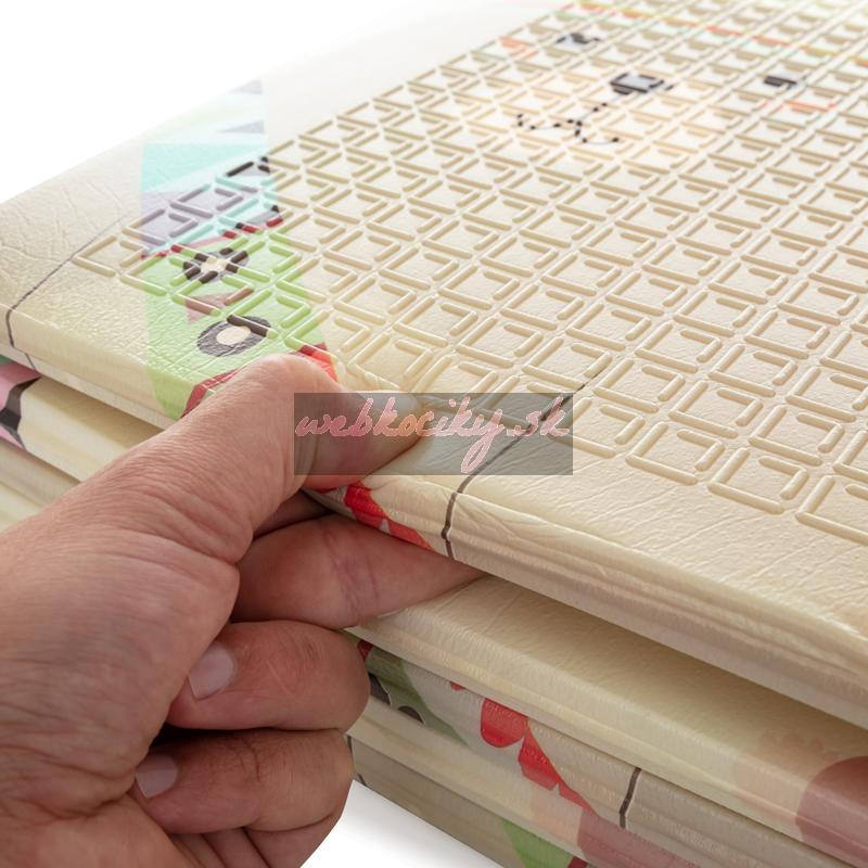 Mäkká skladacia podložka pre bezpečnú hru vášho dieťatka. Vhodná od narodenia. Podložka má obojstrannú potlač s veselými motívmi, protišmykovú úpravu na povrchu, skvele izoluje a odhlučňuje, je vodeodolná, jemná na povrchu, elastická, avšak tvarovo stabilná, skladná a predovšetkým poskytuje deťom bezpečie pri hre. Dá sa zložiť do praktickej prenosnej tašky, ktorá je súčasťou produktu. Vďaka svojej ľahkosti a jednoduchému skladaniu je podložka ľahko prenosná a vhodná na použitie vo vnútri i vonku.