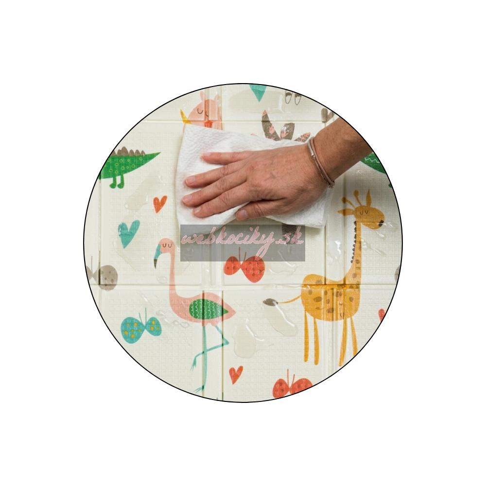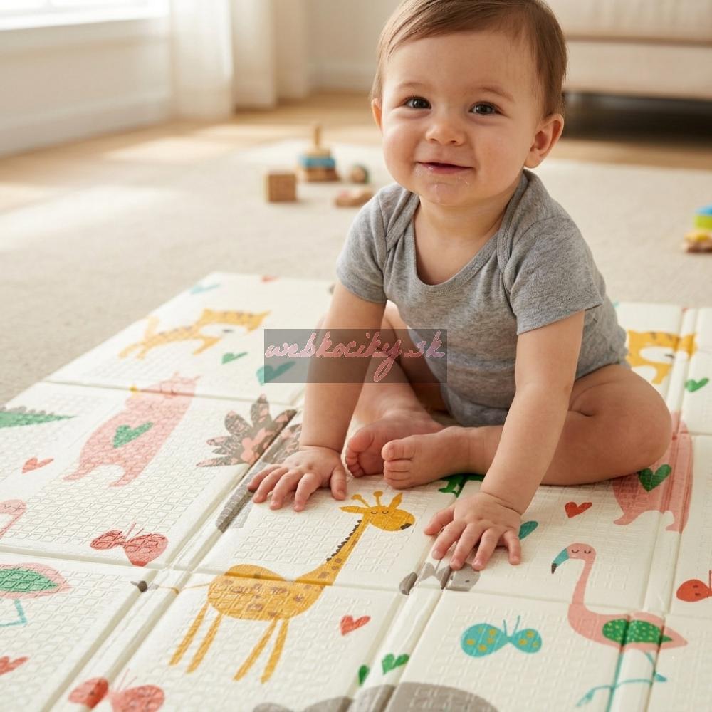 Mäkká skladacia podložka pre bezpečnú hru vášho dieťatka. Vhodná od narodenia. Podložka má obojstrannú potlač s veselými motívmi, protišmykovú úpravu na povrchu, skvele izoluje a odhlučňuje, je vodeodolná, jemná na povrchu, elastická, avšak tvarovo stabilná, skladná a predovšetkým poskytuje deťom bezpečie pri hre.