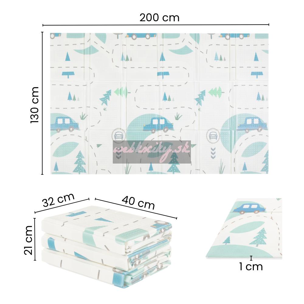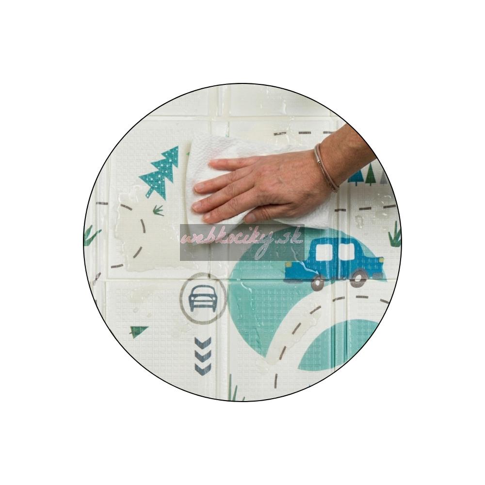 Mäkká skladacia podložka pre bezpečnú hru vášho dieťatka. Vhodná od narodenia. Podložka má obojstrannú potlač s veselými motívmi, protišmykovú úpravu na povrchu, skvele izoluje a odhlučňuje, je vodeodolná, jemná na povrchu, elastická, avšak tvarovo stabilná, skladná a predovšetkým poskytuje deťom bezpečie pri hre.
