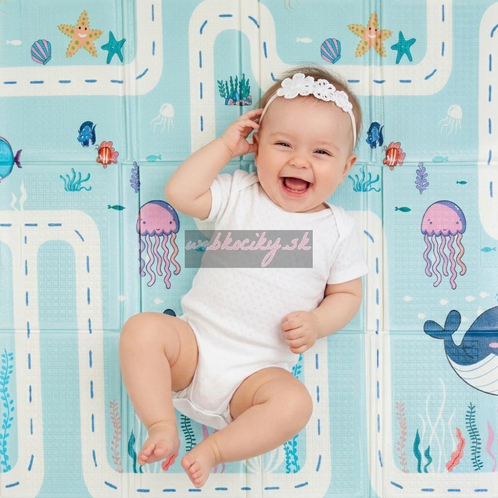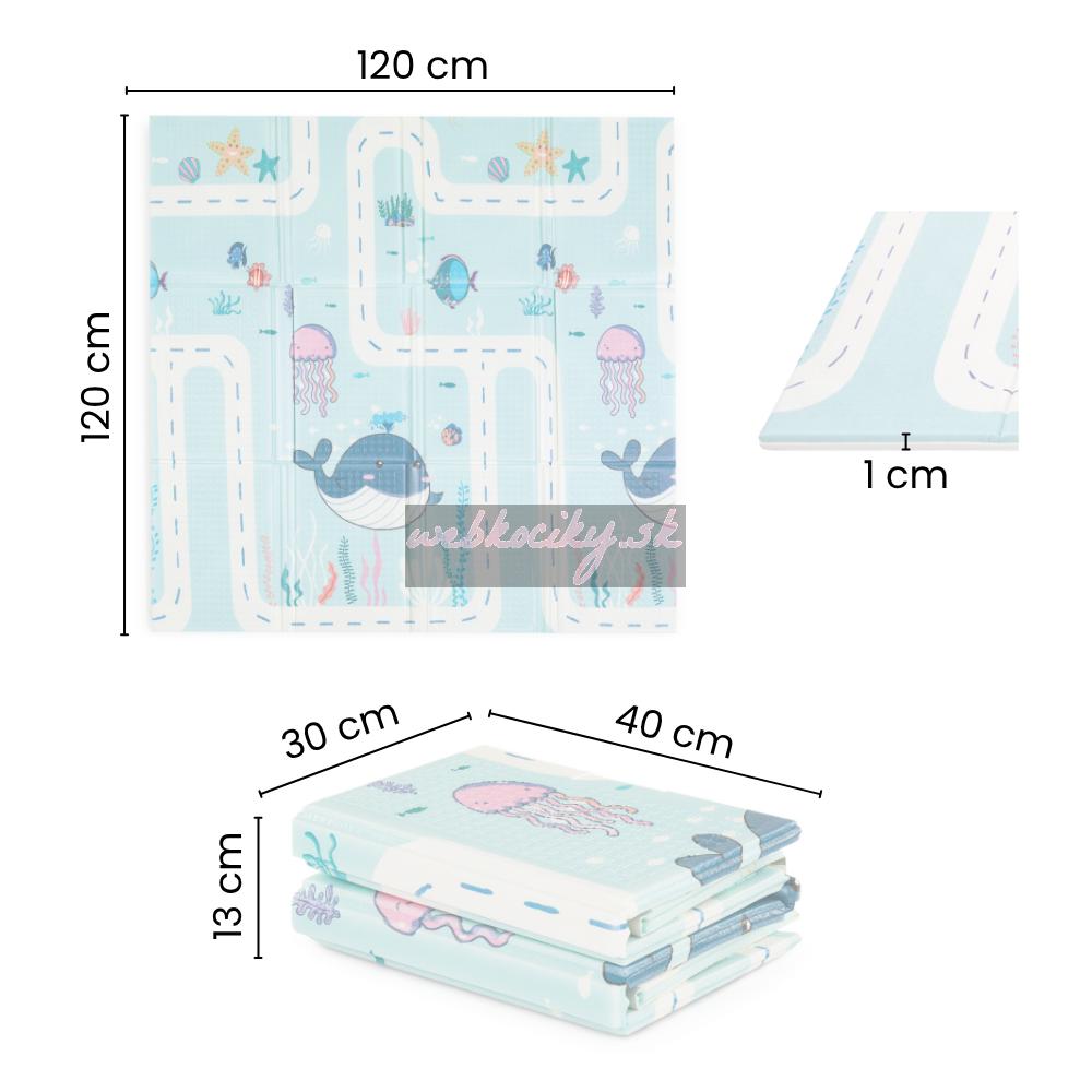 Mäkká skladacia podložka pre bezpečnú hru vášho dieťatka. Vhodná od narodenia. Podložka má obojstrannú potlač s veselými motívmi, protišmykovú úpravu na povrchu, skvele izoluje a odhlučňuje, je vodeodolná, jemná na povrchu, elastická, avšak tvarovo stabilná, skladná a predovšetkým poskytuje deťom bezpečie pri hre.