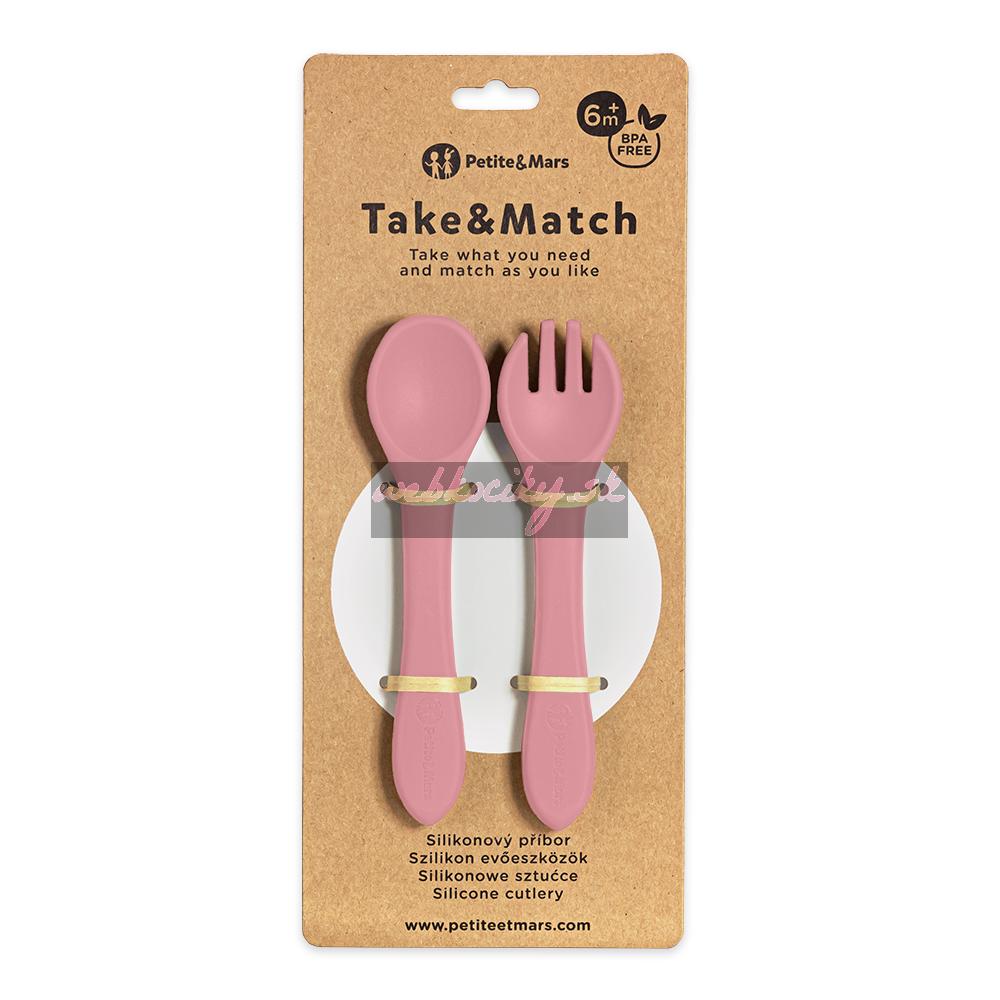 PETITE&MARS Príbor silikónový TAKE&MATCH Dusty Rose 6m+
