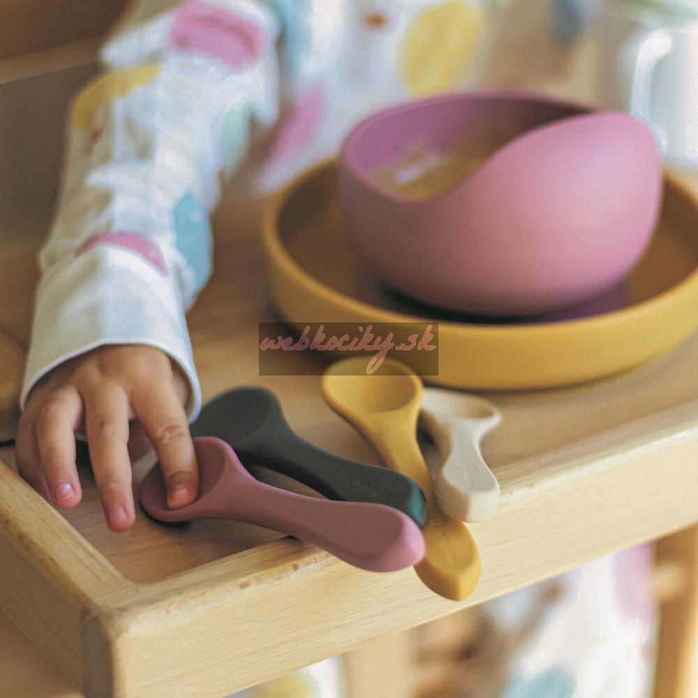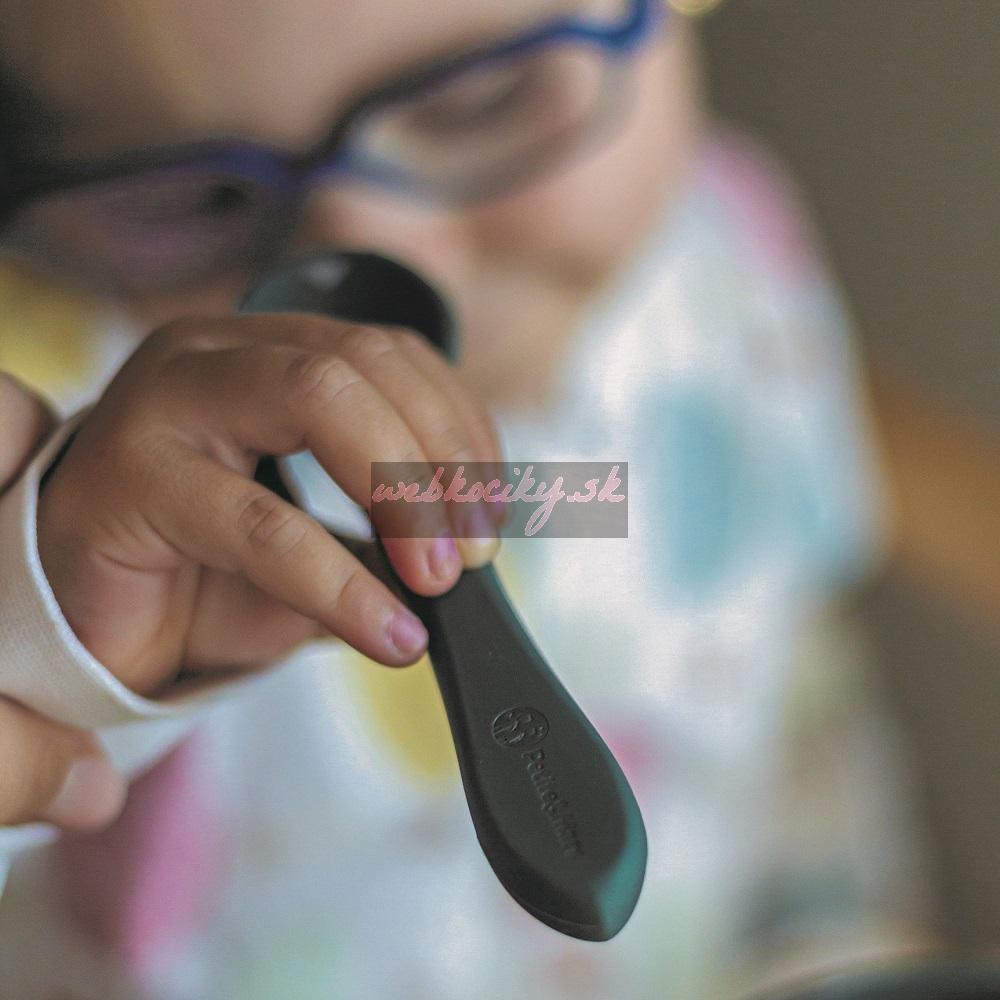 Súprava pozostávajúca z vidličky a lyžičky je celá vyrobená z potravinárskeho silikónu bez obsahu BPA. Vďaka tomu môže vaše dieťa jesť príborom teplé aj studené jedlá. Vďaka pružnému silikónu je príbor ideálny pre citlivé ďasná malého dieťaťa. Príbor je vhodný pre deti od 6 mesiacov, ktoré sa zoznamujú s pestrou stravou, a pre tie, ktoré sa už úspešne učia jesť samy. Zaoblené tvary a malé rozmery uľahčujú dieťatku ich uchopenie a tým aj papanie.