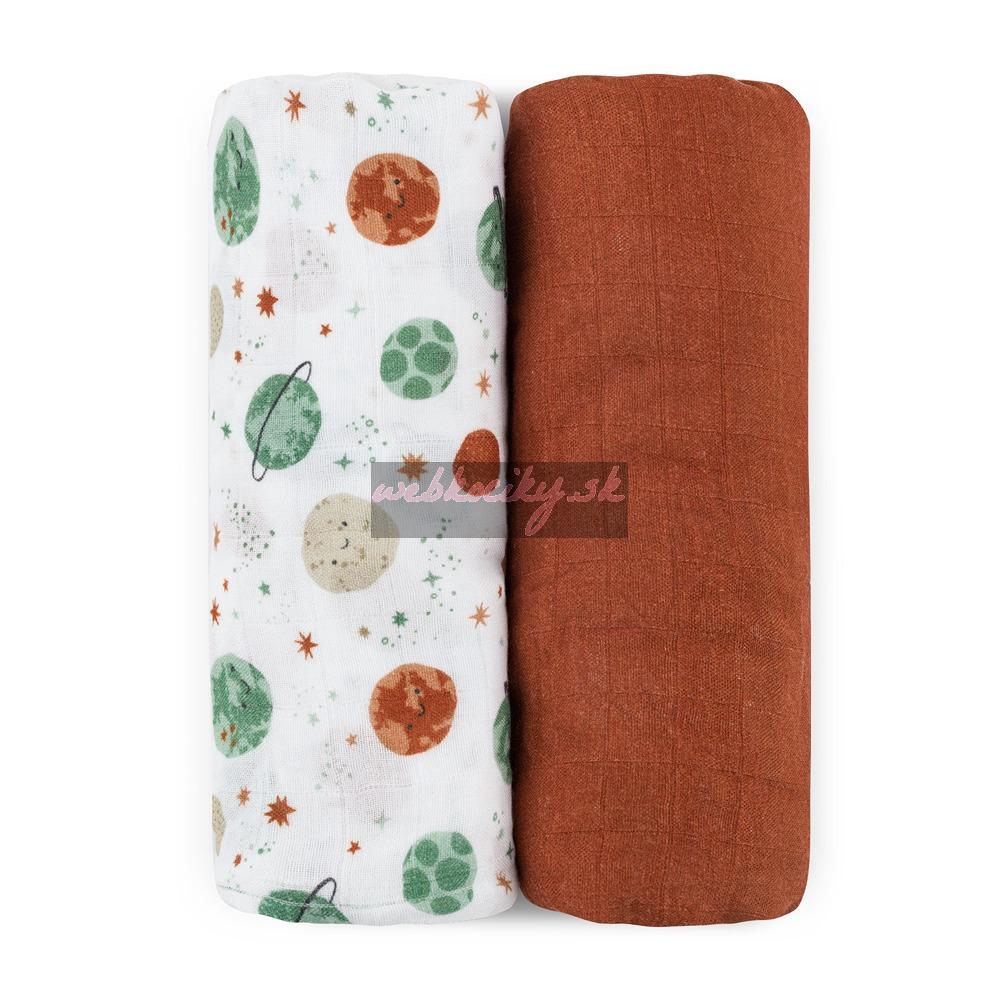 PETITE&MARS Prikrývka bambusová mušelínová 2ks Misty Celestial Planets 120 x 120 cm