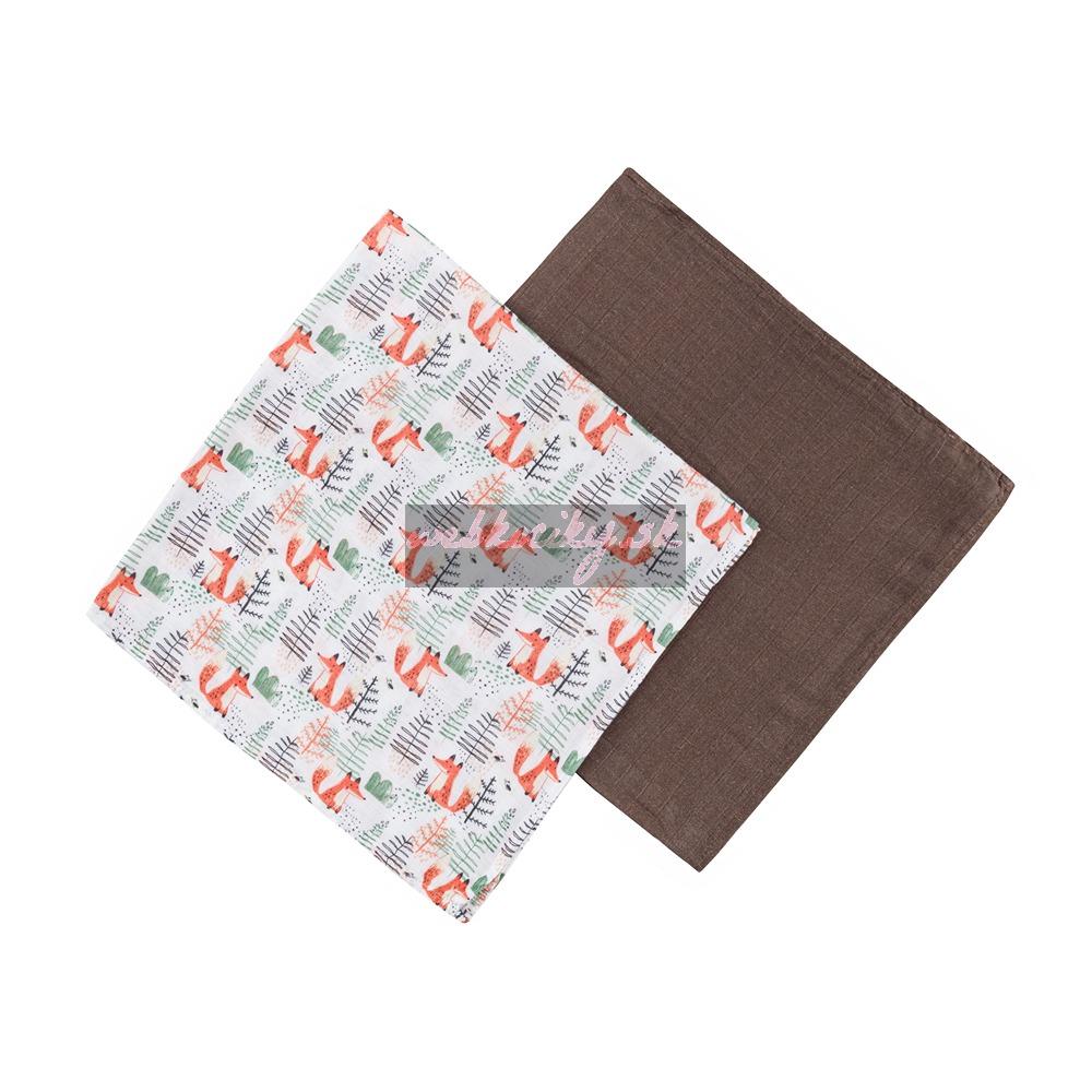 PETITE&MARS Prikrývka bambusová mušelínová 2ks Misty Forest Fox 120 x 120 cm