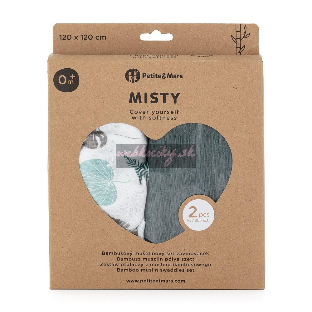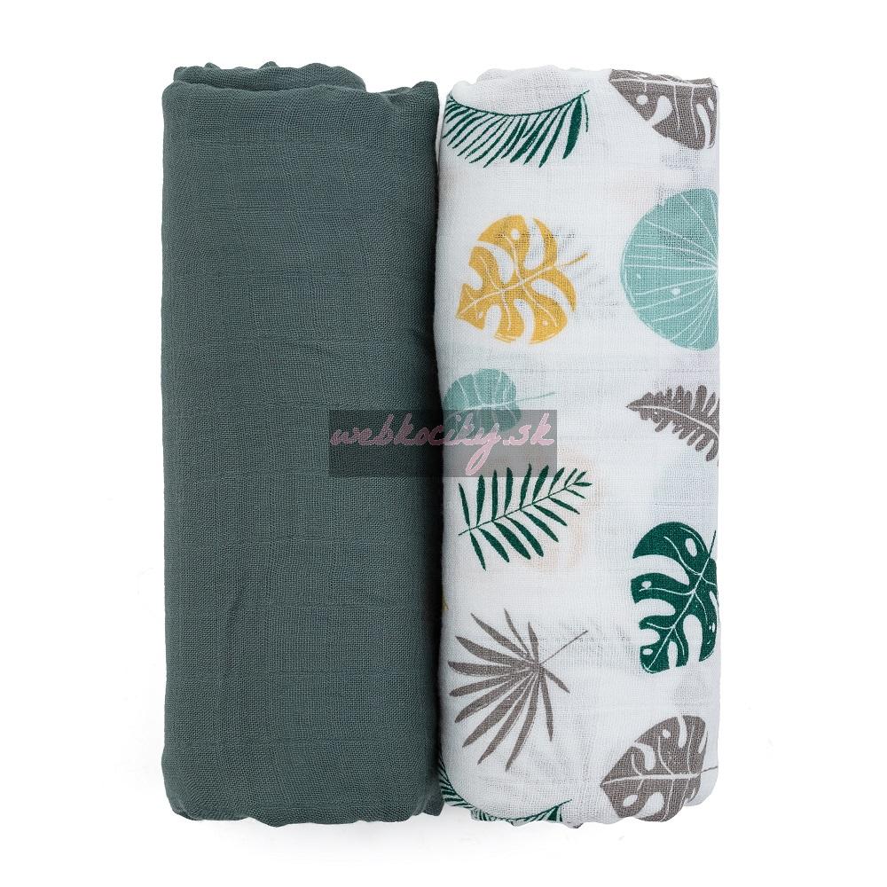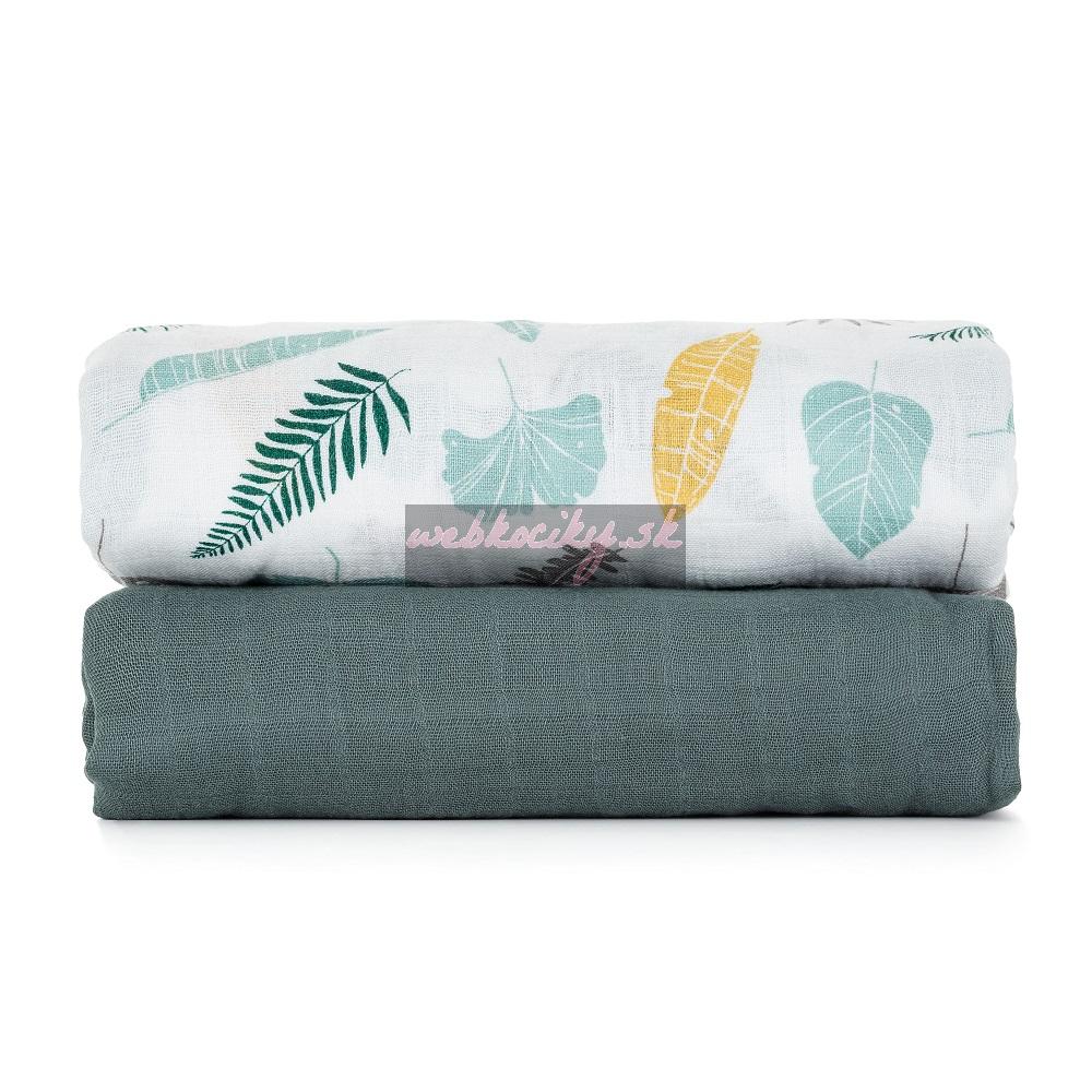 PETITE&MARS Prikrývka bambusová mušelínová 2ks Misty Green Leaves 2v1, 120 x 120 cm