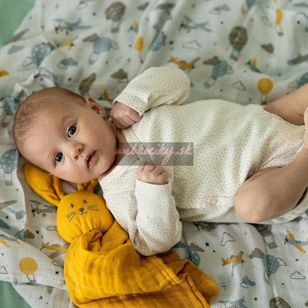 Materiál, ktorý sa skladá zo 70% z bambusovej priadze a z 30% z bavlny, je certifikovaný podľa normy Oeko-Tex® Standard 100, teda neobsahuje žiadne škodlivé látky a je pre Vaše dieťatko bezpečný už od narodenia.