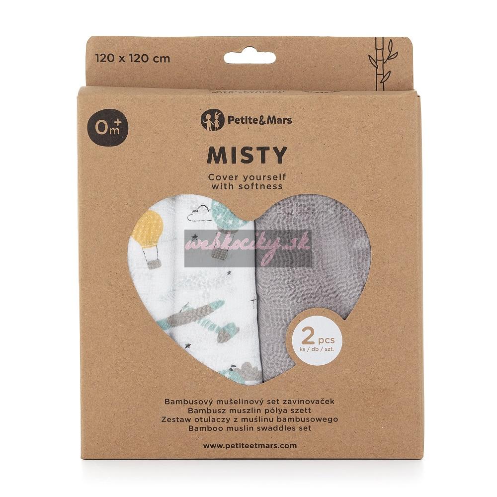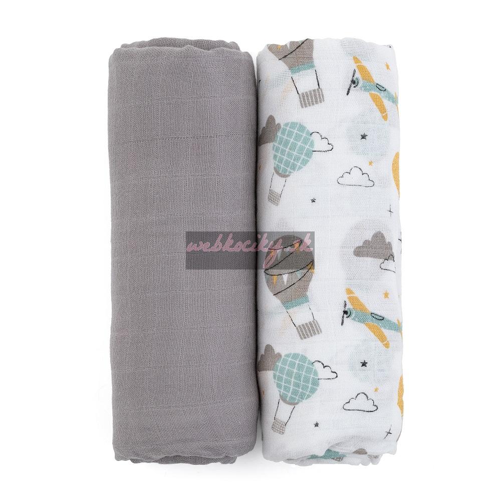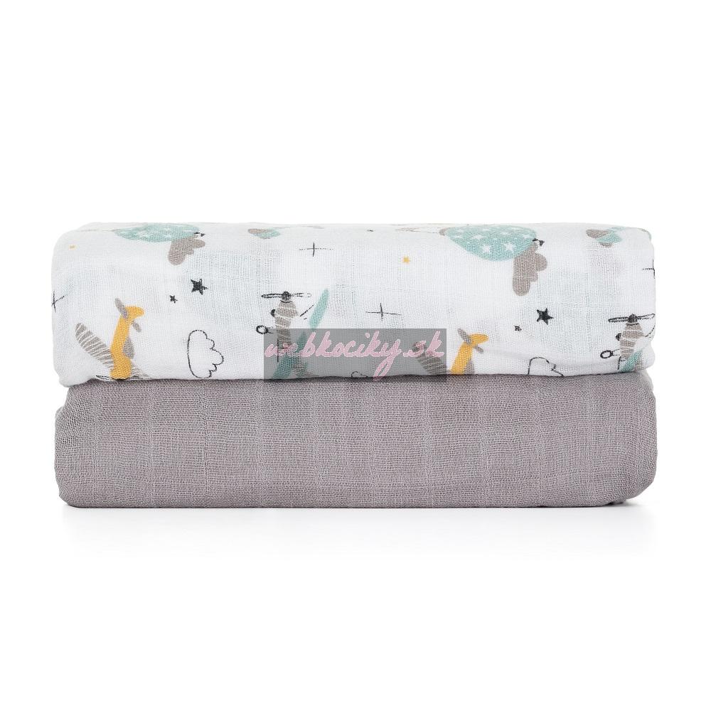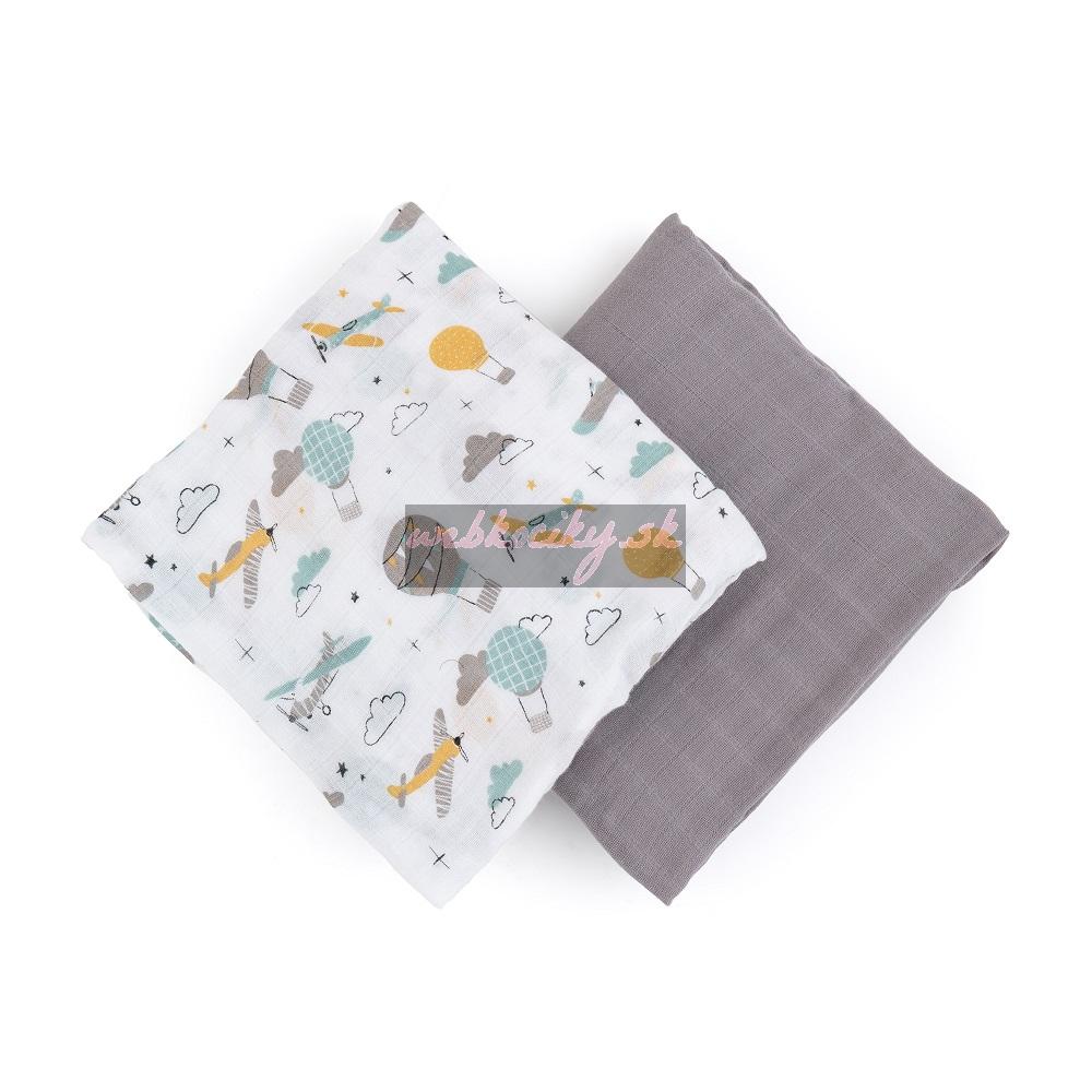 PETITE&MARS Prikrývka bambusová mušelínová 2ks Misty Grey Planes 2v1, 120 x 120 cm