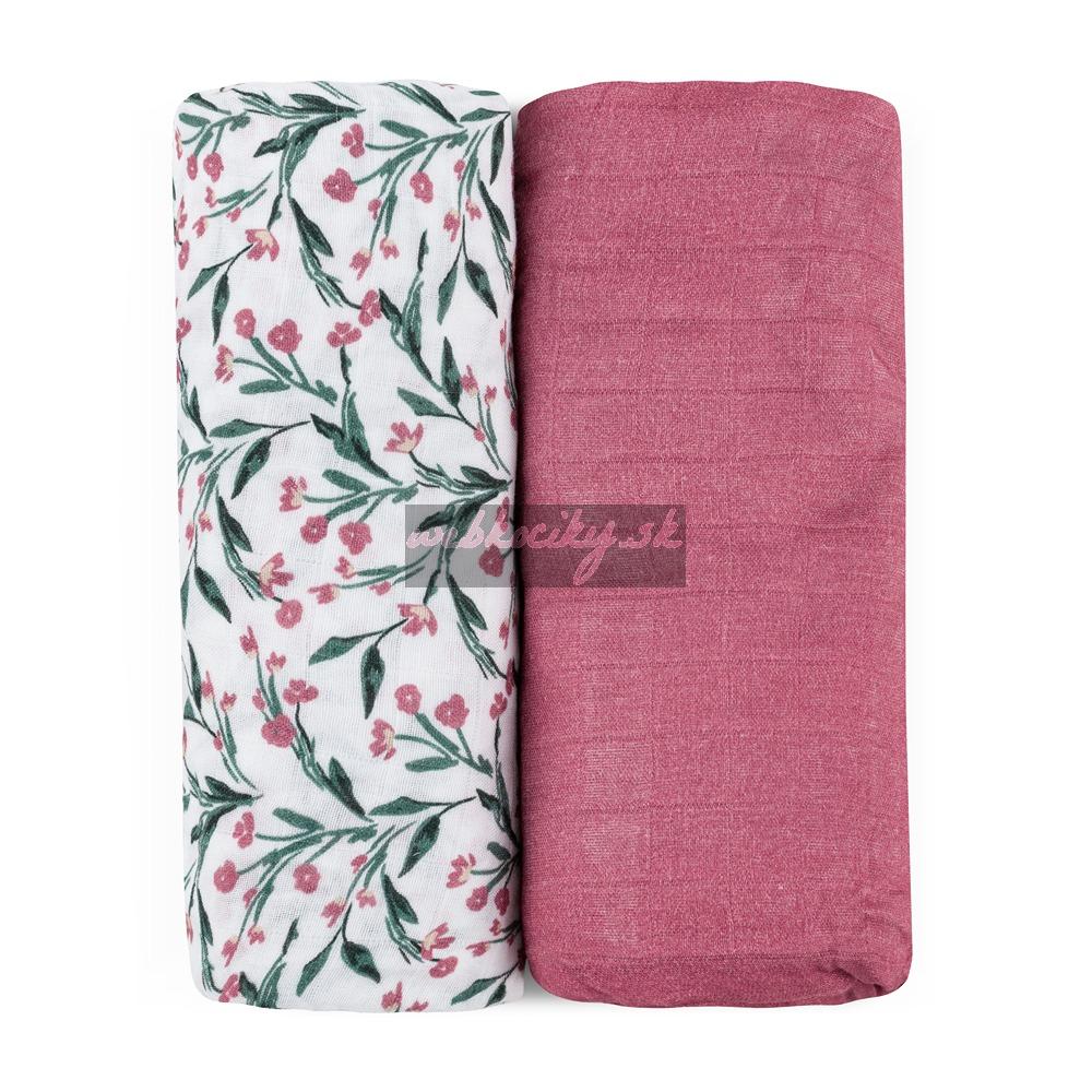 PETITE&MARS Prikrývka bambusová mušelínová 2ks Misty Pink Meadow 120 x 120 cm