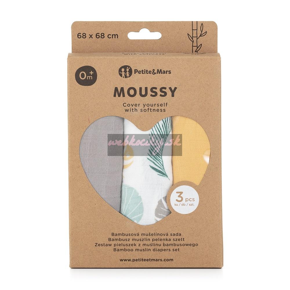 PETITE&MARS Sada plienok bambusová mušelínová 3ks Moussy Ochre Leaves, 68 x 68 cm