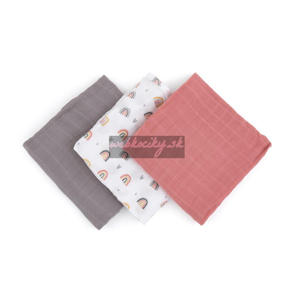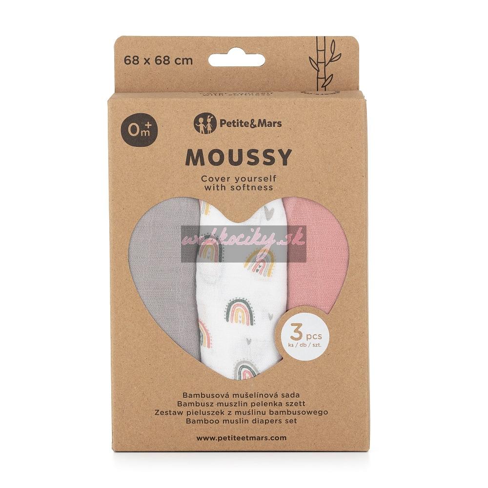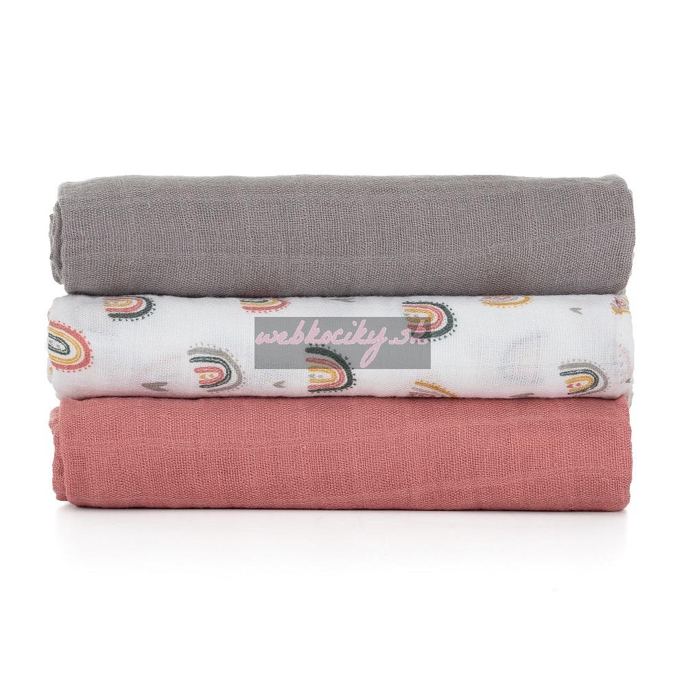 PETITE&MARS Sada plienok bambusová mušelínová 3ks Moussy Rose Rainbows, 68 x 68 cm