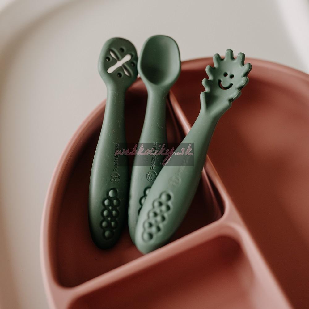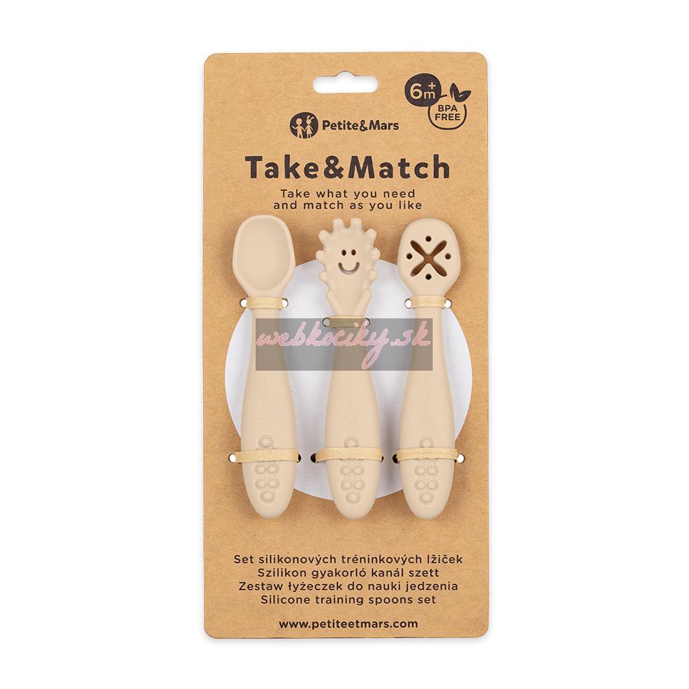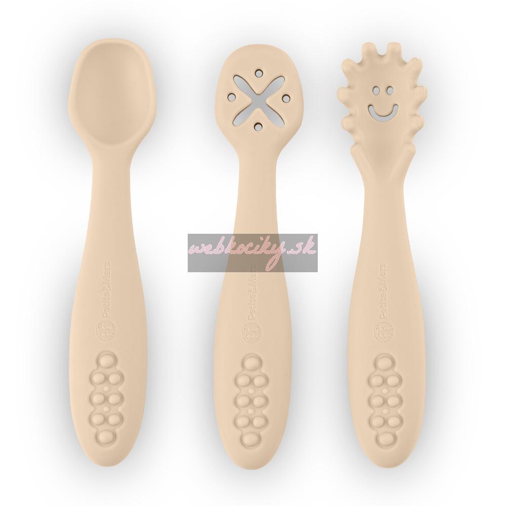PETITE&MARS Set 3 ks silikónových tréningových lyžičiek Take&Match Desert Sand 6m+