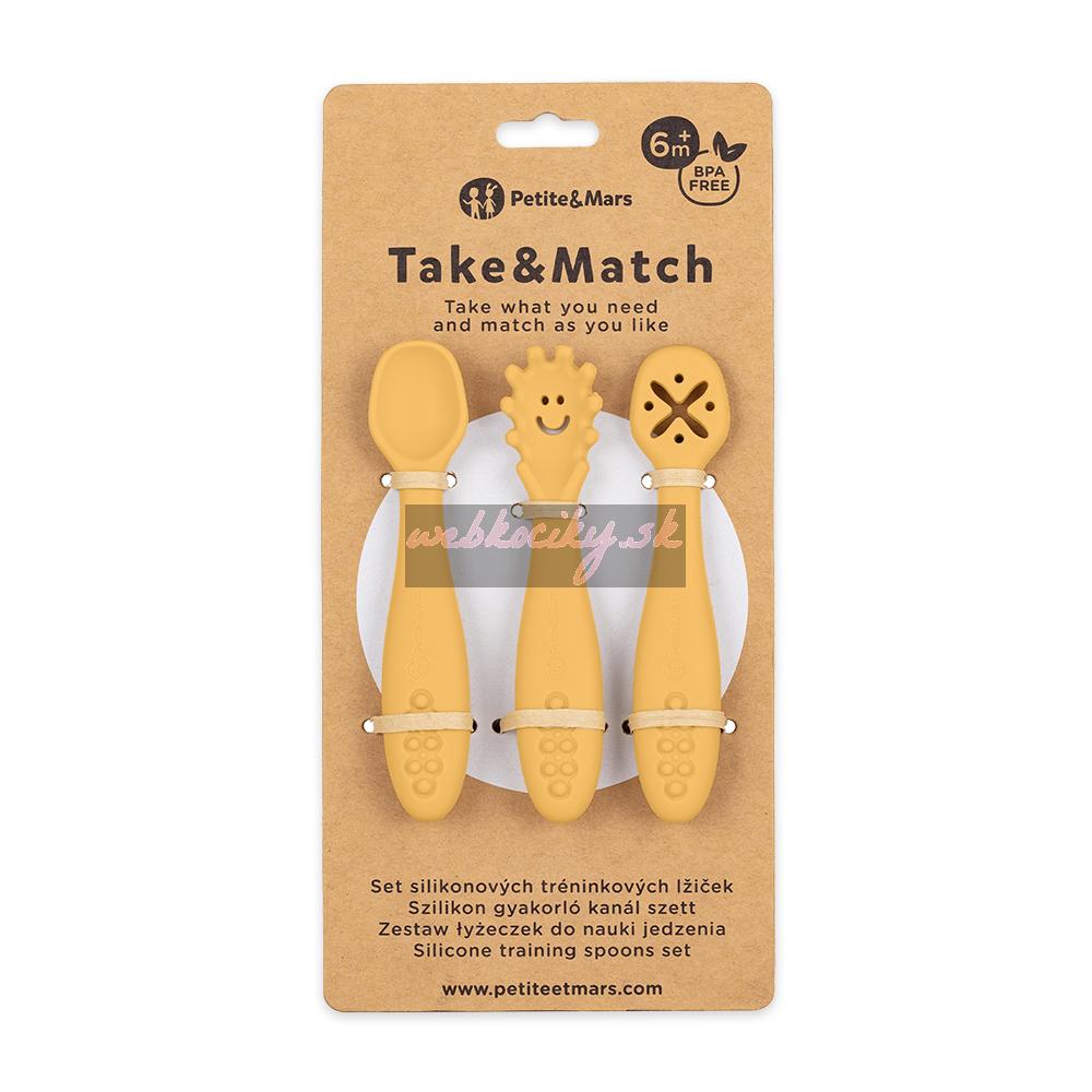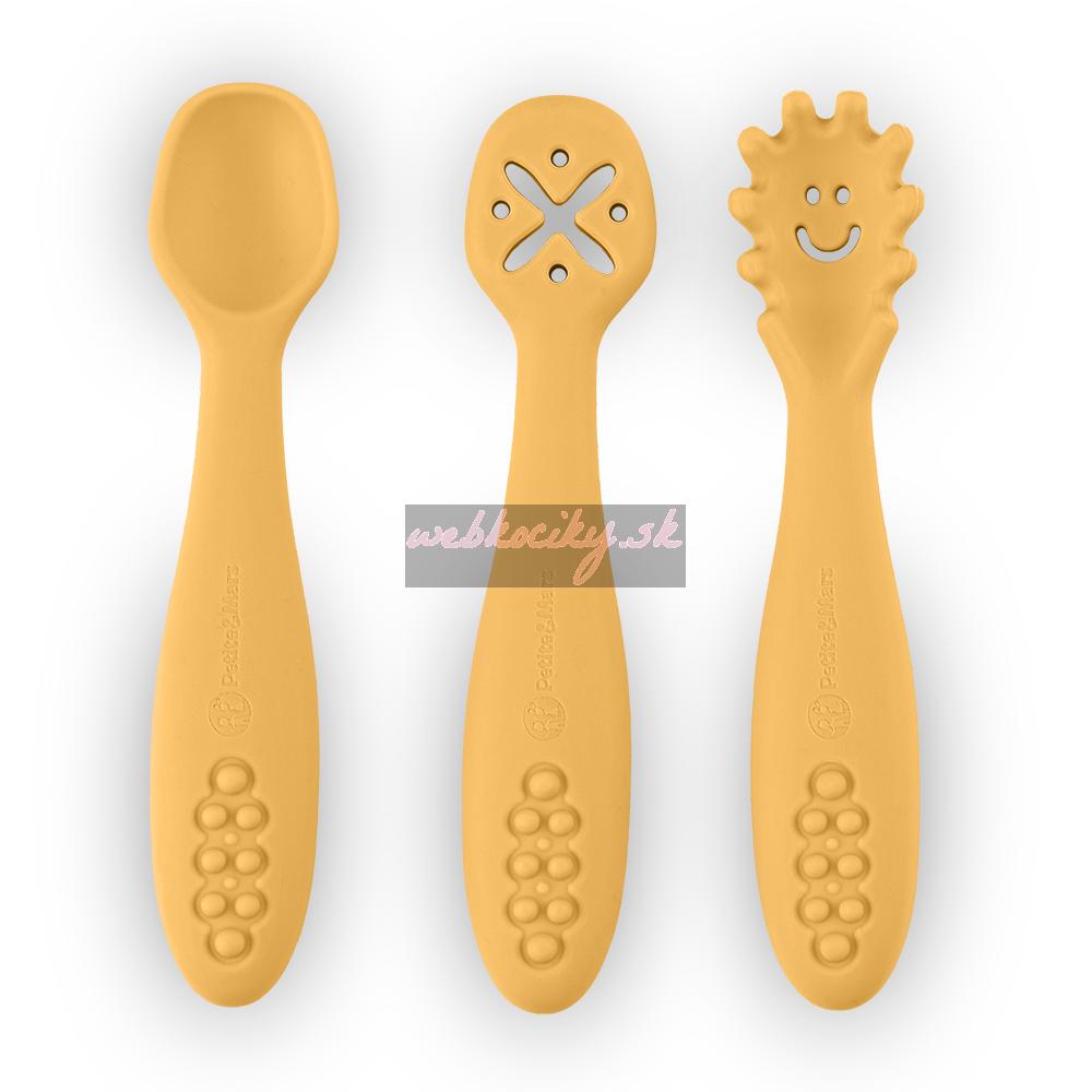 PETITE&MARS Set 3 ks silikónových tréningových lyžičiek Take&Match Intense Ochre 6m+