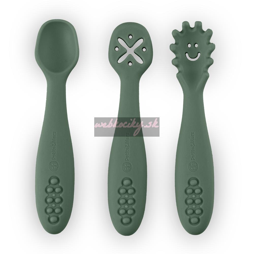 PETITE&MARS Set 3 ks silikónových tréningových lyžičiek Take&Match Misty Green 6m+