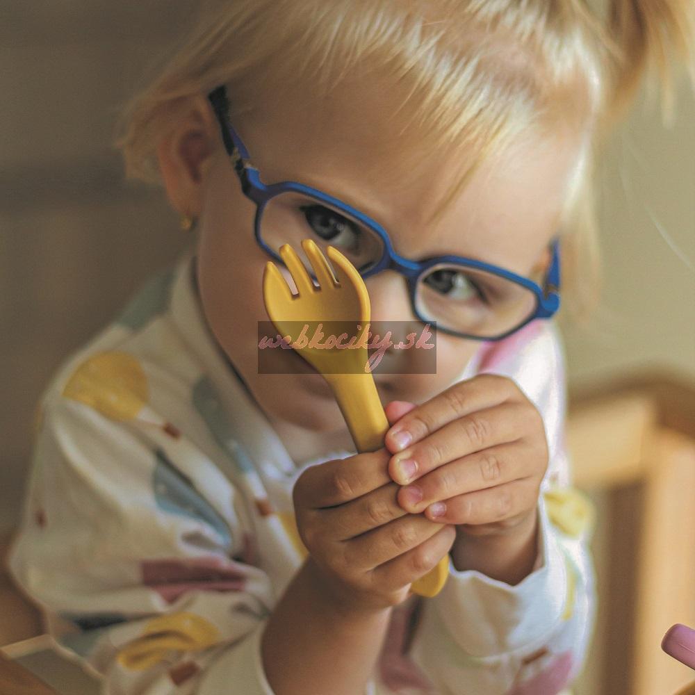 Súprava pozostávajúca z vidličky a lyžičky je celá vyrobená z potravinárskeho silikónu bez obsahu BPA. Vďaka tomu môže vaše dieťa jesť príborom teplé aj studené jedlá. Vďaka pružnému silikónu je príbor ideálny pre citlivé ďasná malého dieťaťa. Príbor je vhodný pre deti od 6 mesiacov, ktoré sa zoznamujú s pestrou stravou, a pre tie, ktoré sa už úspešne učia jesť samy. Zaoblené tvary a malé rozmery uľahčujú dieťatku ich uchopenie a tým aj papanie.