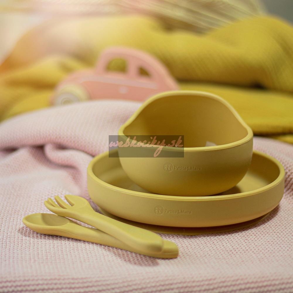 PETITE&MARS Set jedálenský silikónový TAKE&MATCH 3 ks Intense Ochre 6m+