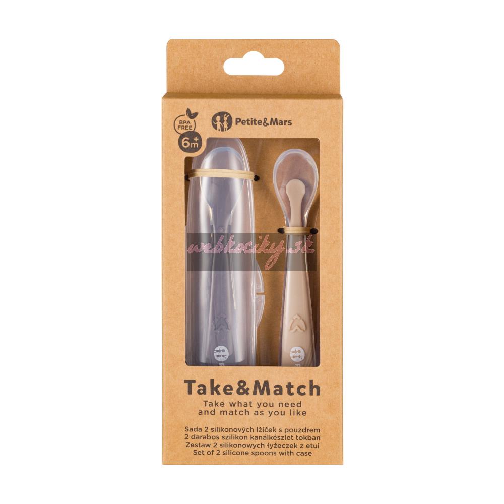 PETITE&MARS Silikónové lyžičky s puzdrom, sada 2 ks, Take&Match Sand - Cocoa 6m+