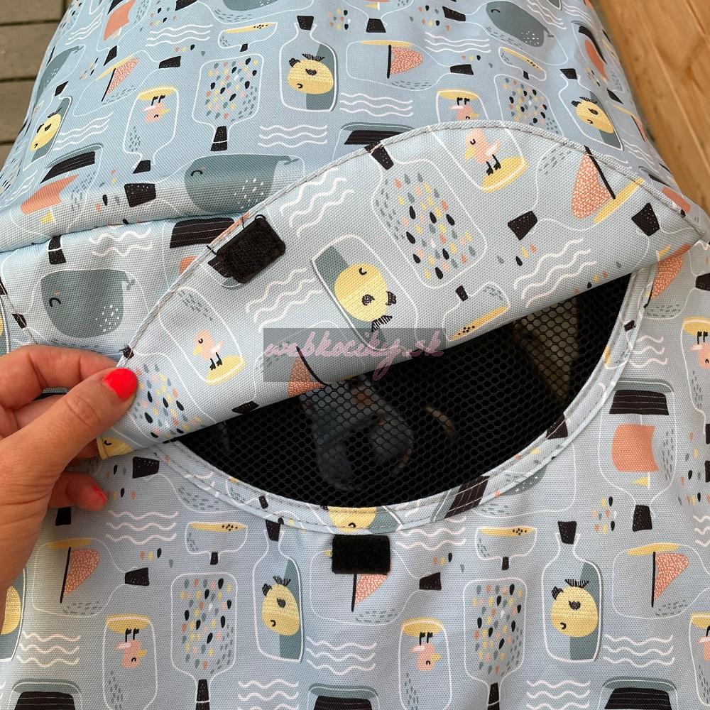 - Kontrolné okienko na strieške s krytím pre väčší kontakt s dieťaťom.
