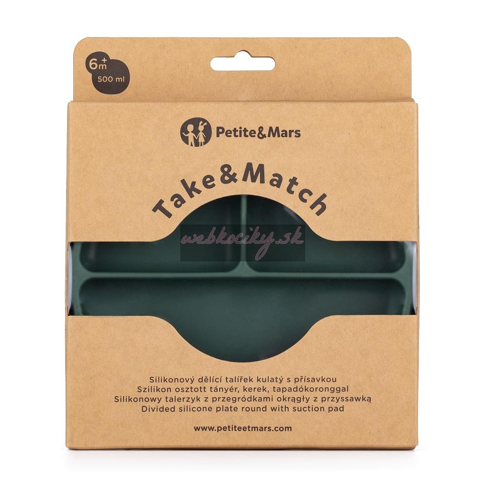 PETITE&MARS Tanierik silikónový deliaci okrúhly Take&Match Misty Green 6m+