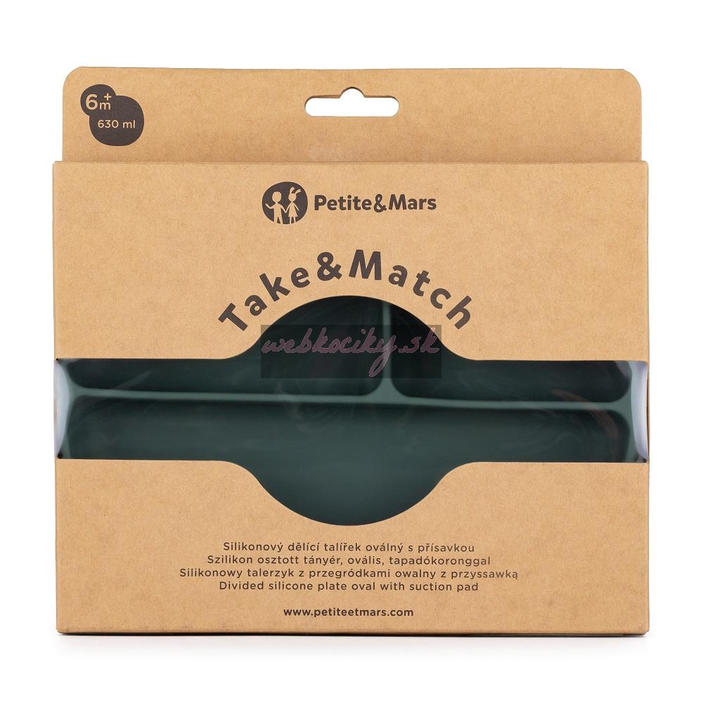 PETITE&MARS Tanierik silikónový deliaci oválny Take&Match Misty Green 6m+