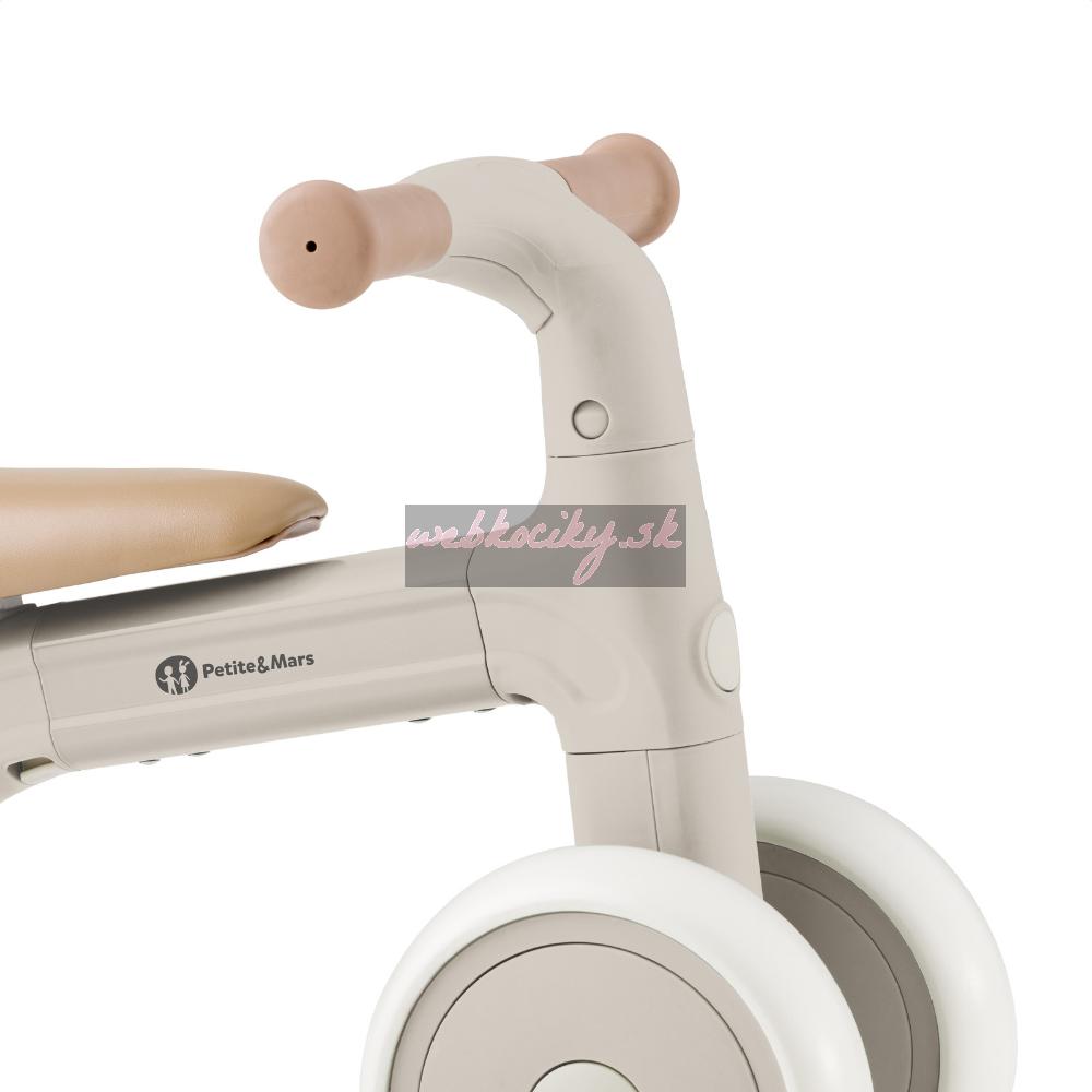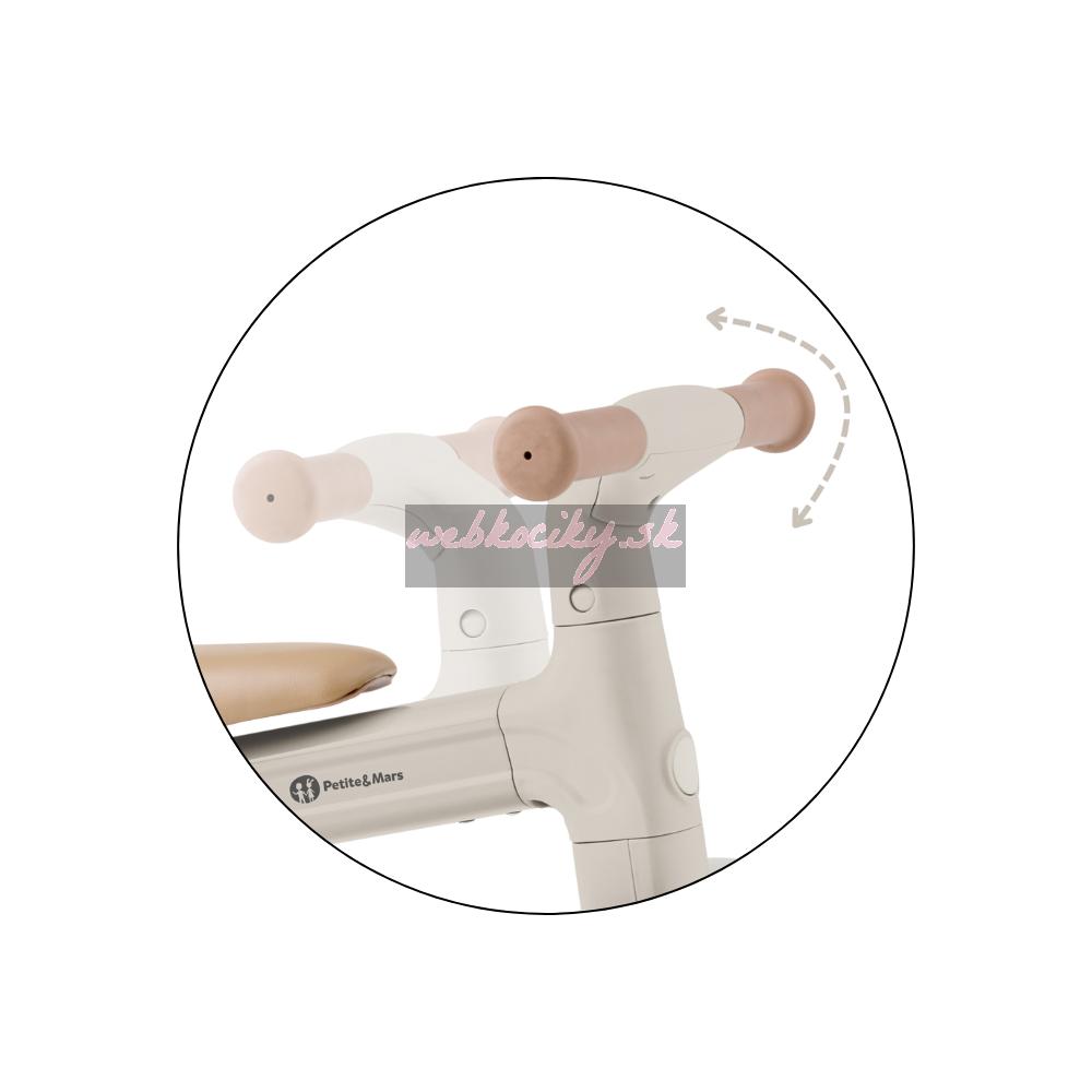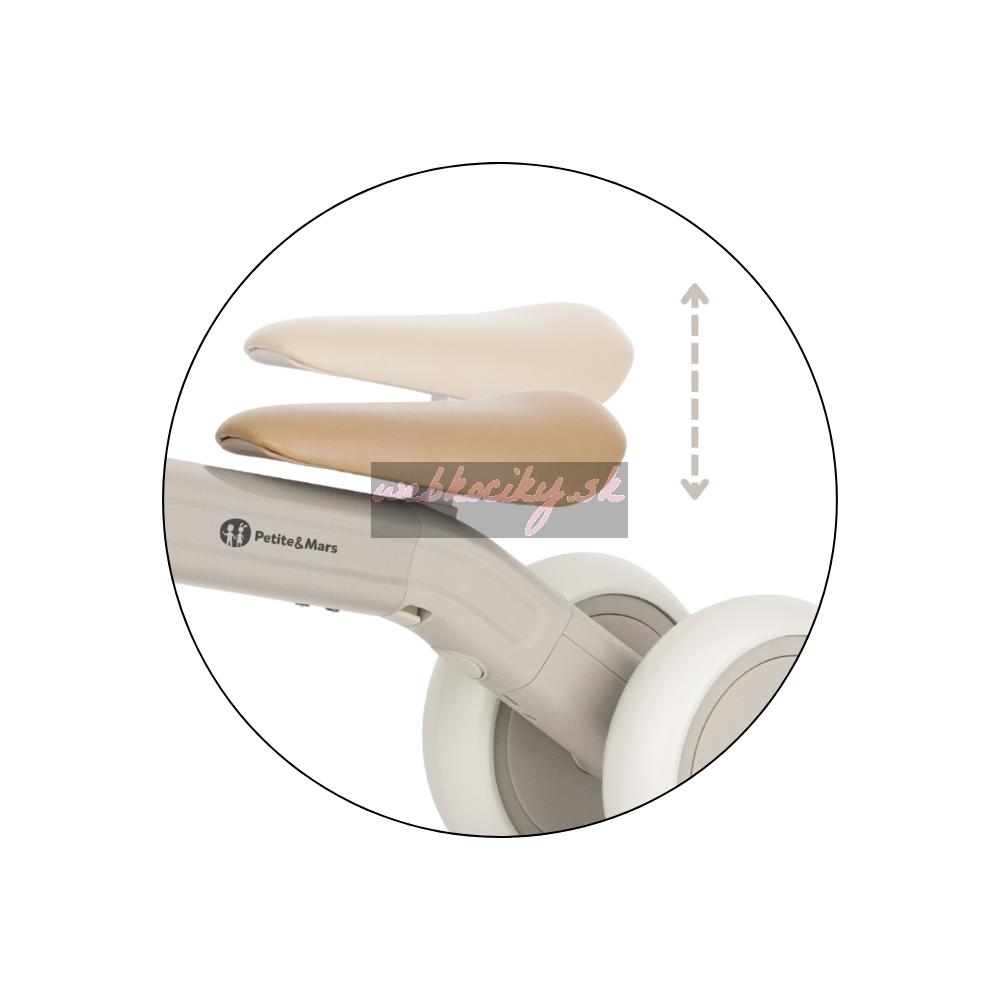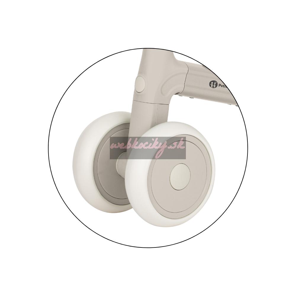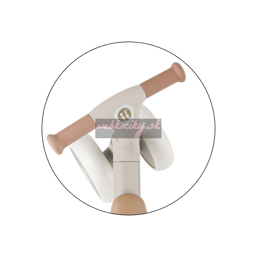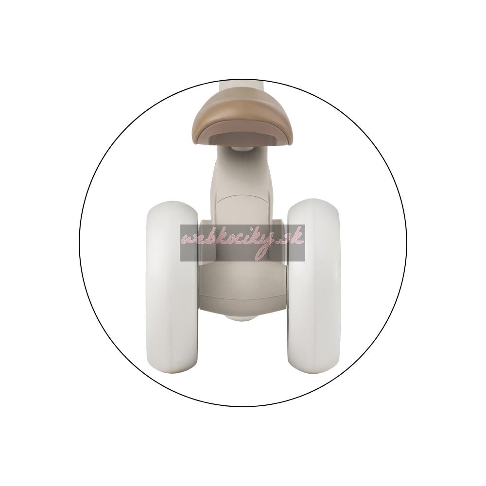 Bingo má otočné riadidlá, dve nastaviteľné výšky sedadla a váži len 2,3 kg, takže ho rodičia bez problémov prenesú – aj popri taške či dieťati v druhej ruke. Penové kolieska sú tiché a zvládnu interiér aj vonkajší povrch. Celý dizajn pôsobí moderne, jemne a zároveň nadčasovo.