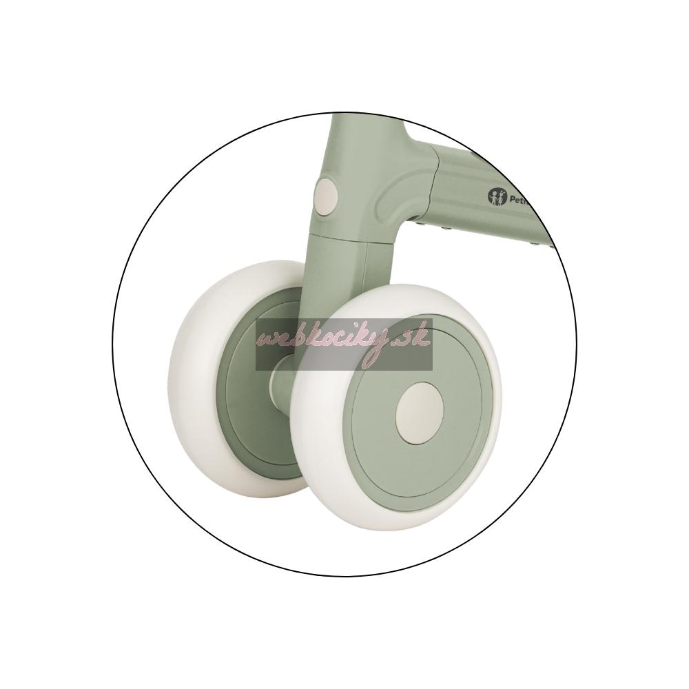 Bingo má otočné riadidlá, dve nastaviteľné výšky sedadla a váži len 2,3 kg, takže ho rodičia bez problémov prenesú – aj popri taške či dieťati v druhej ruke. Penové kolieska sú tiché a zvládnu interiér aj vonkajší povrch. Celý dizajn pôsobí moderne, jemne a zároveň nadčasovo.