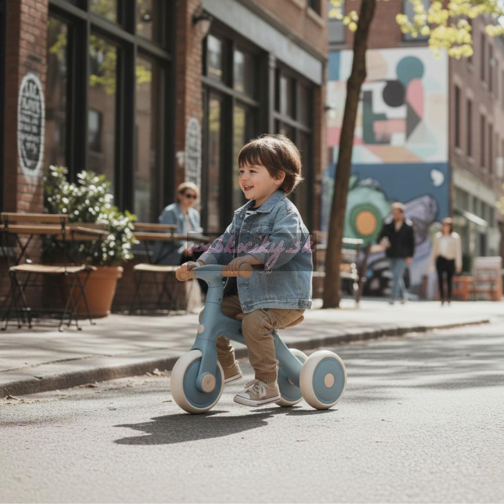 Na začiatku poslúži ako stabilná trojkolka (s možnosťou upevniť dve kolieska vpredu alebo vzadu) – ideálna pre malých začiatočníkov, ktorí ešte len hľadajú rovnováhu a učia sa dôverovať vlastným nohám. Keď dieťa trochu podrastie a začne byť v pohybe istejšie, Bingo sa dá jednoducho prestavať na klasické balančné odrážadlo. V tejto fáze sa už odráža samo, reguluje si rýchlosť a trénuje koordináciu aj smer. A keď príde správny čas, stačí nasadiť pedále – Bingo sa zmení na ich prvý bicykel, na ktorom môžu skúsiť prvé šliapanie. Všetko sa dá zvládnuť jednoducho a bez náradia – len pár pohybov a je hotovo.